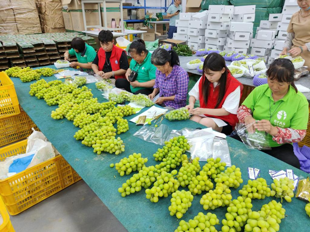 期待已久的三下乡终于在昨天启航啦!出发首日天气晴朗,朝阳毫不吝啬的洒落在我们出发的大道上。按照约定的时间到达了学校门口,拍了大合照之后的我们批次出发了!路上的风景仿佛在欢送我们,舒展着她们最动人的姿态,让我们也感到身心无比的舒畅,顺着路不一会儿便到了我们的目的地———乡丰农场。一到那我们便开始了任务,按照出发前的分工,我们井然有序的进行着,探过葡萄园,分拣过无花果,包装过葡萄,辨别过网纹瓜,冲过冷藏库这便是我们一天的状态!