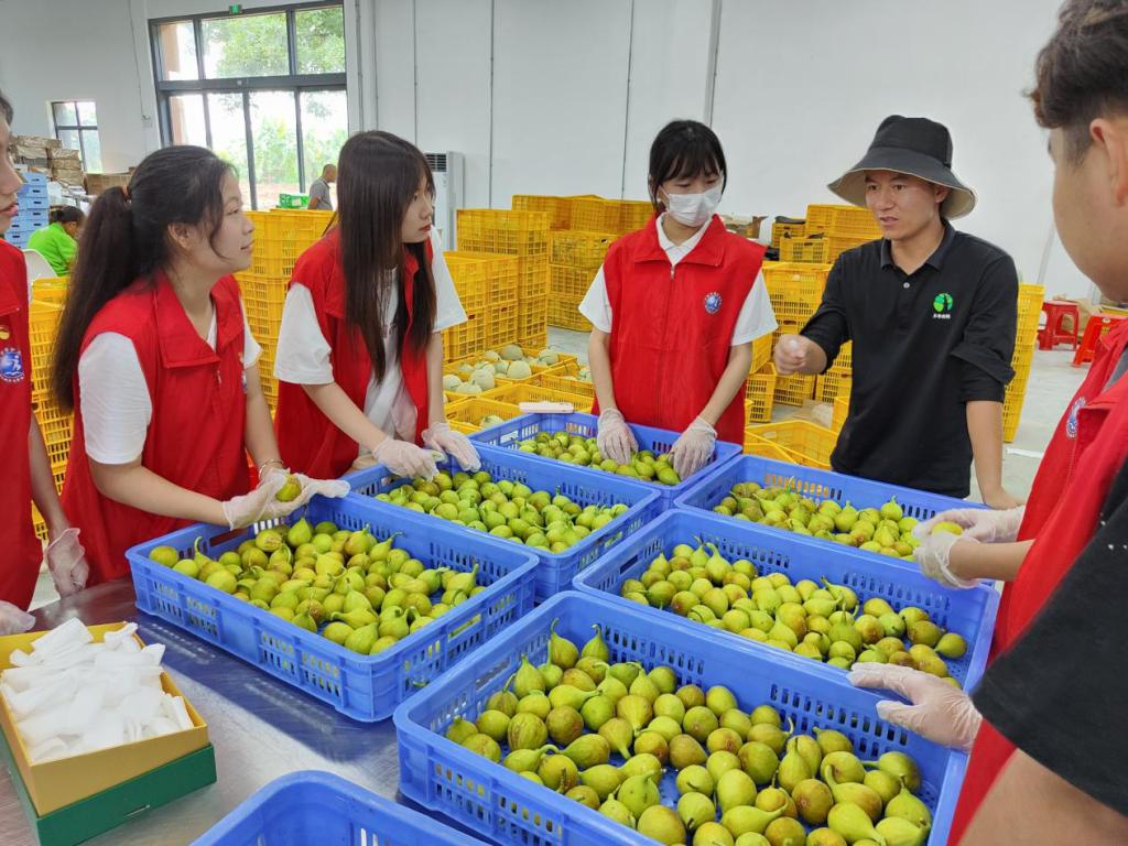 我们团队抵达乡丰农场后,第一感觉就是那里的环境优美,绿柳成荫,蜻蜓环绕。我们在农场的技术指导人员的带领下快速的加入了调研状态,参观无花果园和葡萄园以及网纹瓜的种植大棚,了解农场的生产细节和采摘流程。其次要感谢农场文师傅给我们科普了关于果实的基本知识,以及如何去挑选与把包装。虽然期间有辛苦我们一直保持高昂的斗志和一种不离不弃的团结精神,让我们本次活动顺利开展!