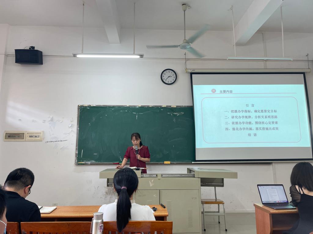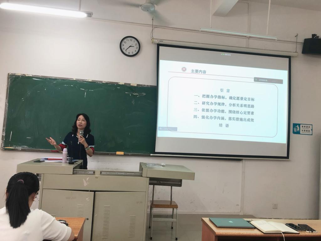 会议开始,梁悦院长总结回顾了上半年工作成效,对新入职教师进行介绍,并将林琨智校长关于《遵循办学规律,加强内涵建设》文件进行重点解读。她指出,职业教育具有高等性和职业性,承担着为经济社会发展输送高素质高级技术人才的重要任务,在当前新的职业教育背景下,全体老师需要转变思维观念,在教书、管理、服务育人等方面齐头并进,希望各位老师提振精神,齐心协力,将学校的内涵建设目标融入我院各项工作,励精更始,蓄力前行。