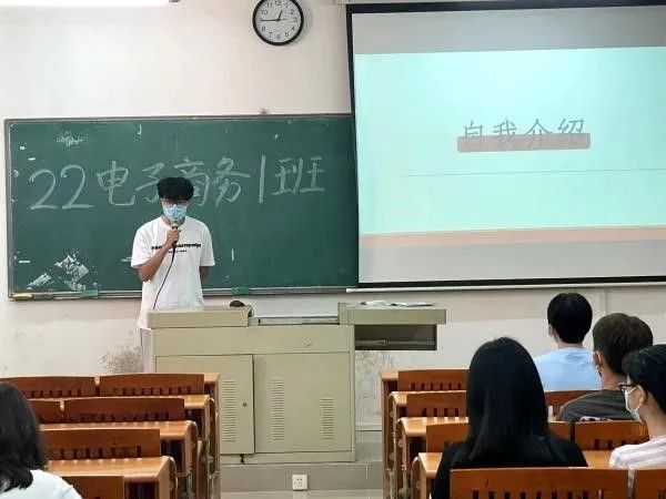 在新生自我介绍后,迎来了竞选军训负责人的环节,同学们踊跃上台竞选,通过各位竞选人自我介绍和讲解自己的优势进行投票选择,竞选成功的军训负责人协助助班们处理班级的相关事宜。