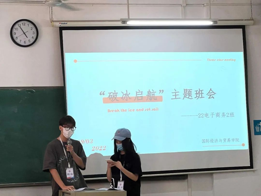 为拉近新生距离、进一步熟悉彼此,国际经济与贸易学院于2022年9月3日下午在博学楼召开“破冰”主题班会,由新生辅导员李悦老师、张智敏老师与助班团共同主持。张智敏老师对22级新生的到来表示热烈欢迎,并对即将迎来大学生活的新生提出要求和期盼。本次班会详细的向新生们介绍学院情况,同时安排班级事宜,为了顺利开展之后的新生工作奠定基础。