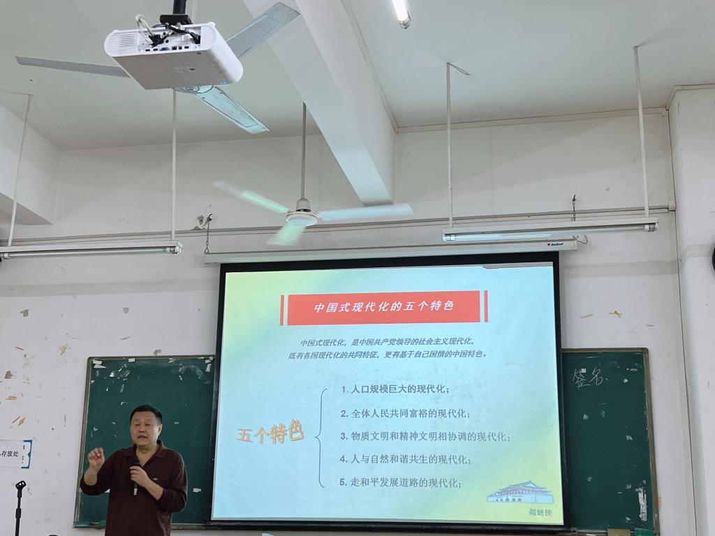 本次大会主题为系统宣讲学习党的二十大精神,冉苒教授以党的历史为切入点,以中国十年来的三件大事,凸显出党的奋进征程及其产生的深远历史意义和重大现实意义。中国共产党第二十次全国代表大会是全党全国各族人民迈上全面建设社会主义现代化国家新征程、向第二个百年奋斗目标进军的关键时刻召开的一次十分重要的大会,在党和国家历史上具有重要里程碑的意义。冉苒教授紧紧围绕二十大报告的大会主题,习近平新时代中国特色社会主义思想的理论创新,以中国式现代化全面推进中华民族伟大复兴目标,重点解析了何为全面建设社会主义现代化的奋斗目标,并对中国式现代化的五个特色做精彩阐述,同时结合中国几千年的发展历史和未来发展趋势,理清了中国式现代化和中华文明传续及未来创新发展趋势之间的关系。他强调,中国式现代化不仅体现在国家治理体系和治理能力的现代化,同时也是我们作为全球负责任大国,面对全球百年未有之变局,致力于推进人类命运共同体的历史使命。未来中国必将更是前途光明,我们更要准确把握党的二十大提出的新思想新论断新部署新要求,深刻领悟,以坚定的信心不断深化对习近平新时代中国特色社会主义的认识,切实将党的领导和党的思想贯通于教育教学管理,紧扣时代精神,创新教育理念,完善育人思路,在学深悟透中砥砺奋发,勇毅前行,在融会贯通中展现新担当新作为。