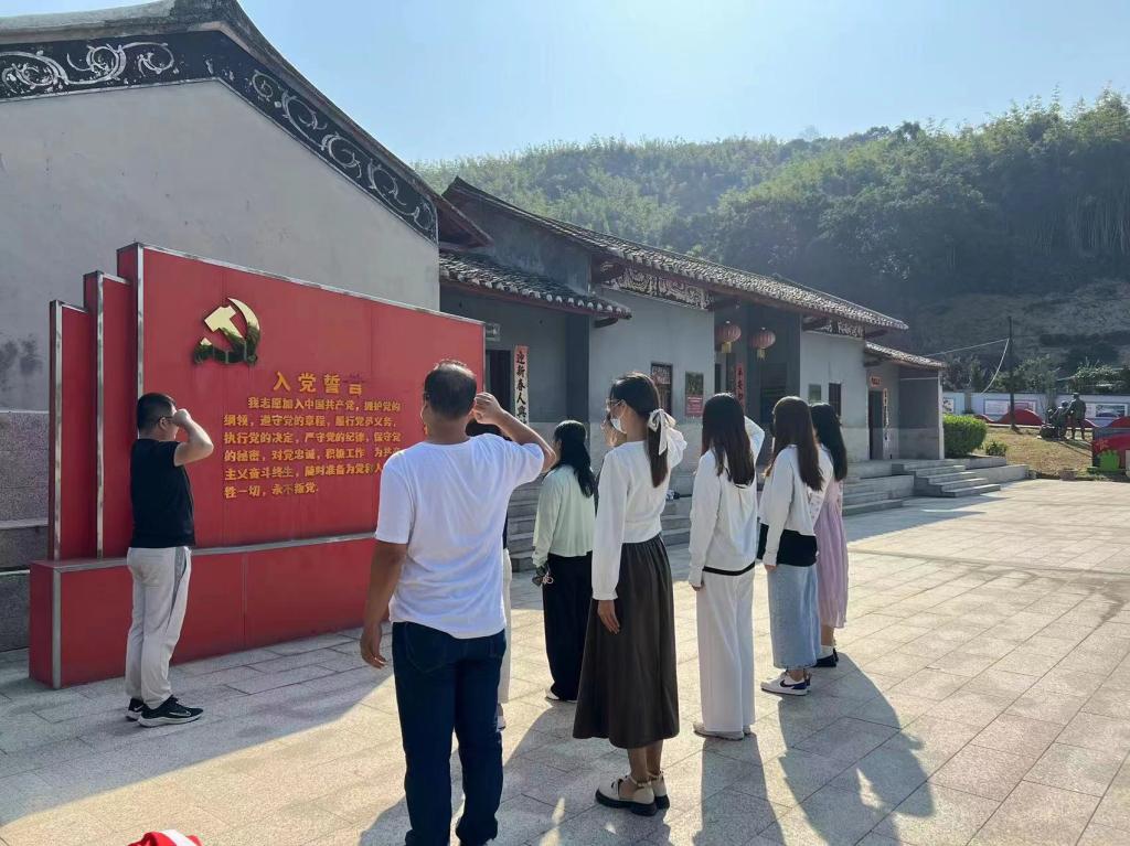 参观完小迳村县委旧址,党总支副书记吴仕坚带领教工党员宣誓,在铿锵有力的宣誓声中,更加坚定了在场每位同志的为国奉献的理想信念。