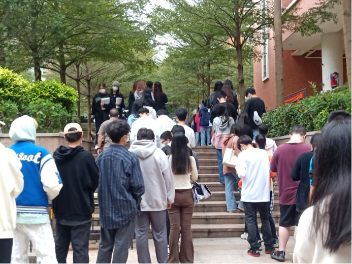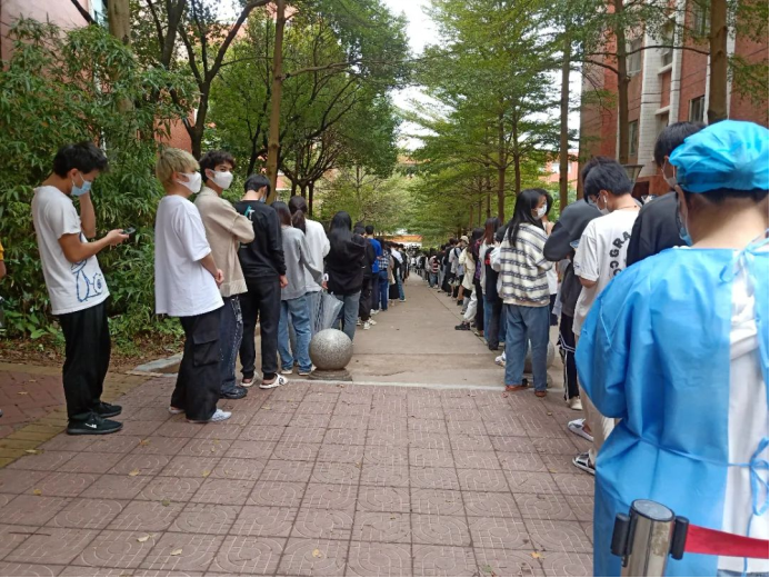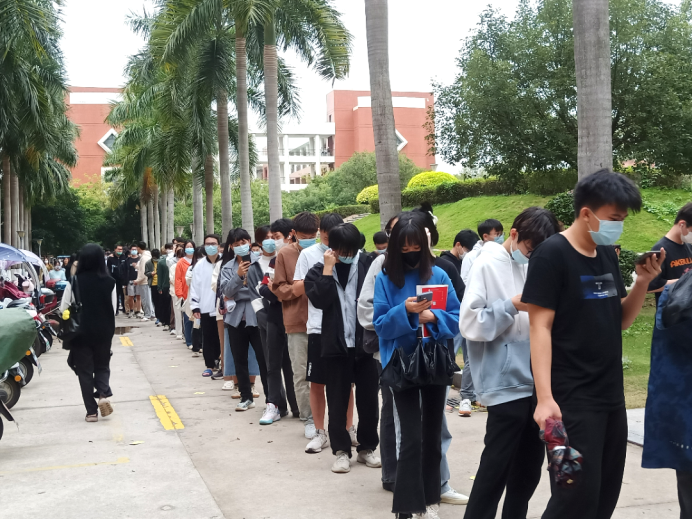 疫情当下,我院师生们全力服从调度安排,各司其职,并肩作战。在志愿者的共同维护下,现场秩序井然有序,同学们保持着一定的安全间距,耐心地排队等候,有序入场,为保障校园安全的平稳运转,做好疫情防控工作提供了强有力的支持。