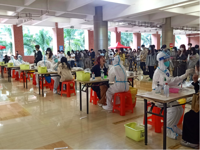 在2022年11月23日、11月25日、11月28日,我院党员教师(莫桂遇、张雅茹、甄伟杰、陈月、韩欣燕、王佳梅)主动请缨,冲锋在前,在特殊时期担负起重任,志愿投身到学校核酸采样队伍中,为师生顺利地完成了核酸采样工作。