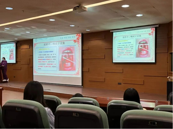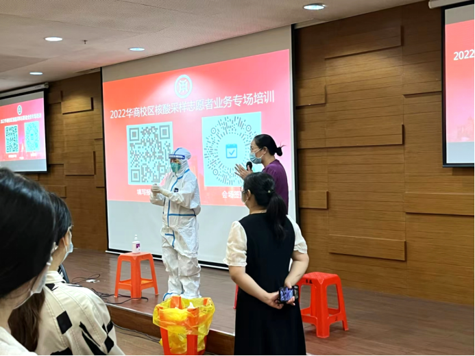 为进一步落实好常态化疫情防控要求,提高疫情防控的应急处理能力,充实核酸采样储备力量,守护广大师生的生命健康安全。2022年11月21日,在增城校区中央图书馆学术报告厅开展第二次核酸采样志愿者业务专场培训会。本次活动邀请了广州市增城区中医院和增城区妇幼保健院的核酸采样专班人员为教师志愿者进行讲解。