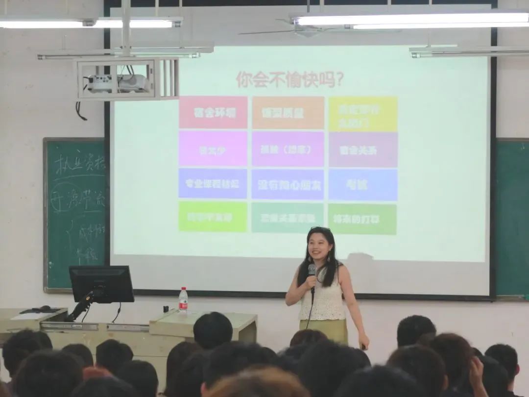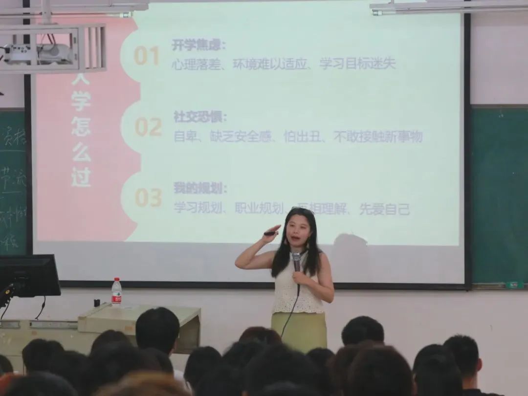 李悦老师从开学焦虑、社交恐惧、规划三方面进行相关阐述,引导大一新生在大学生活中可以尝试着去多表现自己,同时也要多关注自己的心理健康。