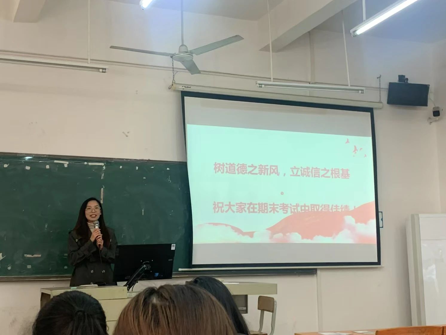 “车无辕而不行,人无信则不立。”诚信,自古以来就是中华民族的传统美德。临近期末考试,数字商务学院学院全体班主任老师开展诚信考试教育主题班会,旨在让学生们深刻领悟诚信于考试的意义,引导其树立正确的考试观念,将诚信内化为个人品质,让诚信之风吹遍校园每一个角落。