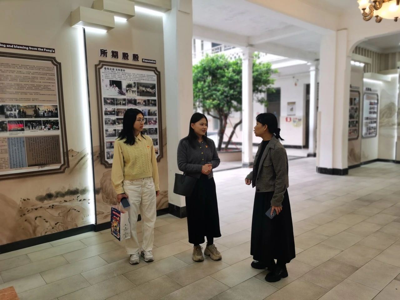 调研组在王巧老师引导下,研读平山小学旧址碑文,透过“宁卖祖宗田,莫忘祖宗言”的铿锵铭文,触摸冯平山1914年斥巨资创办新式学堂、引进先进教育理念的壮举。谭凤莲管理员展示的景堂图书馆百年捐赠档案,更印证冯氏家族以书传道,以文化人的世代坚守。泛黄的捐资账簿与书信手稿,勾勒出华侨“虽富不忘本、达则济天下”的精神图谱。