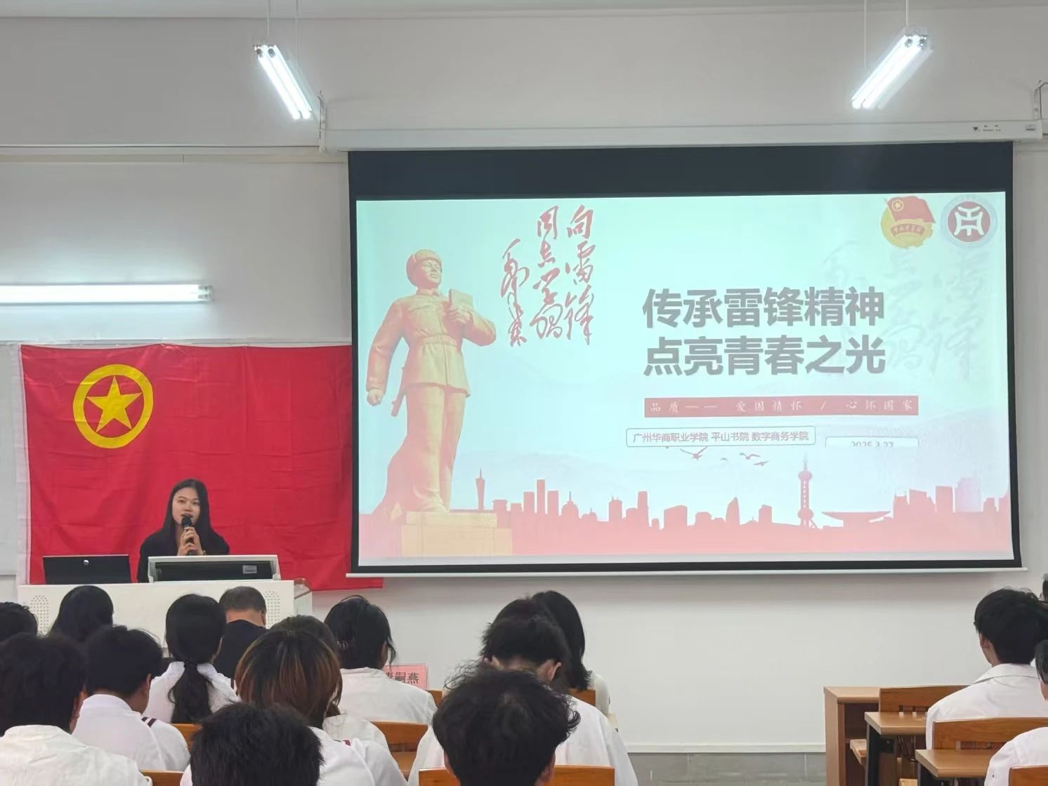 唐嗣燕老师在总结中强调:“新时代青年要传承雷锋精神的核心,主动肩负时代赋予的重任。”她号召青年学子实际行动践行雷锋精神:在学习中精益求精,在工作中勇于担当,在社会服务中无私奉献,以青春之我助力民族复兴。