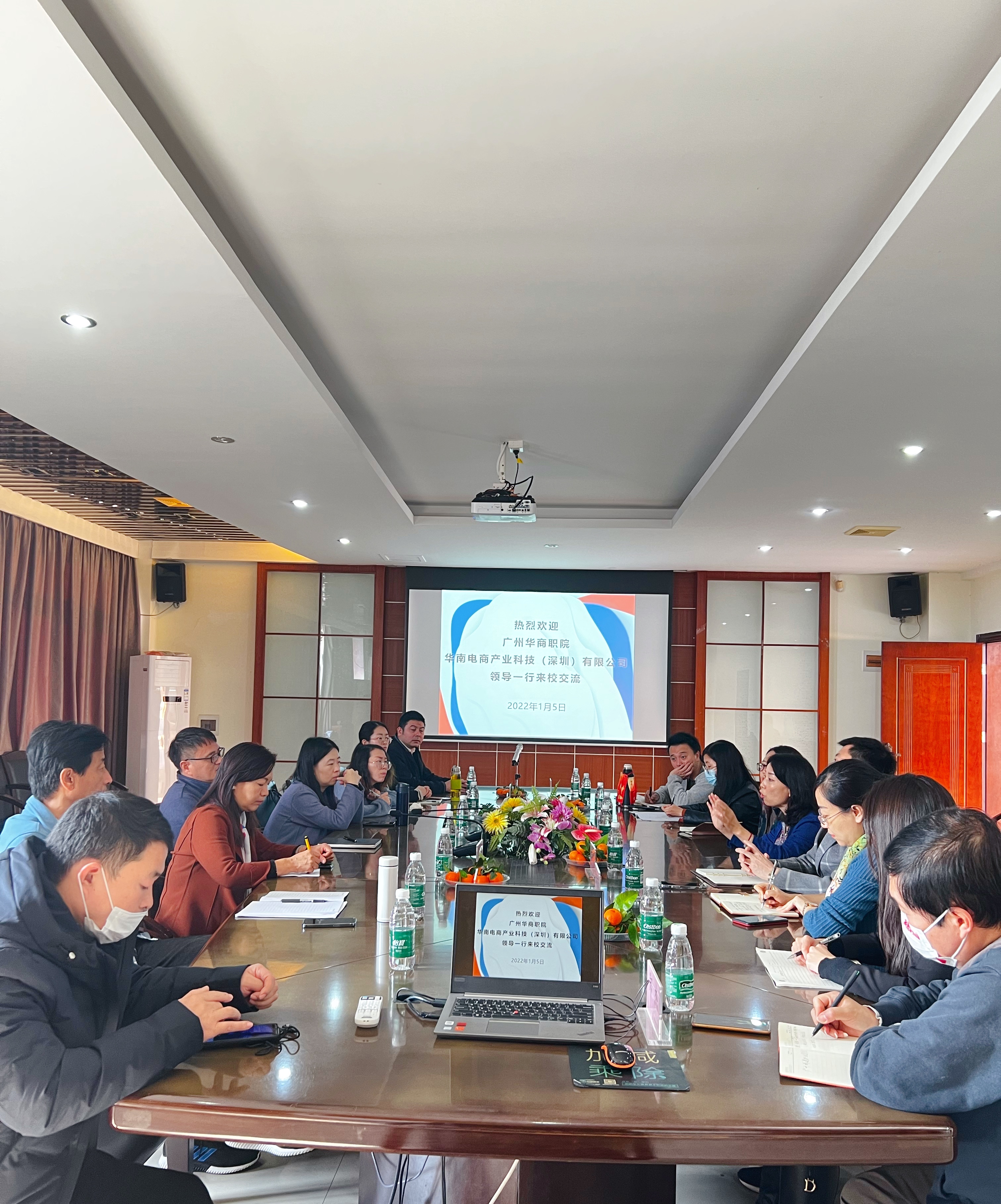 根据工作任务项目化建设目标,为学习兄弟院校在高水平专业群建设、产教协同共育人才等方面的先进经验与做法,加强与行业龙头企业深度合作,1月5日,国际经济与贸易学院梁悦院长、张丽菠副院长带领商务英语教研室主任黄翔老师、国际商务教研室主任周碧茵老师、电子商务教研室主任周利平老师及郑杰、周丹、廖卓艺、陈利老师等一行9人,及深圳华南产业科技有限公司朱家宝董事长,前往广州城建职业学院外语外贸学院开展走访、调研、学习工作。