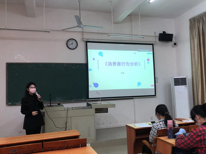 沙副院长分别给大家介绍了参加比赛的两位青年老师,分别是来自国际商务专业的周碧茵老师和商务英语专业的尹柯老师。大赛以“上好一门课”为竞赛理念,由教学设计及教学资源、说课及教学绝活展示两部分组成。赛前参赛老师向经验丰富的老师虚心请教、共同确定讲课内容,并对内容反复切磋。比赛过程中,参赛老师熟练运用教案、多媒体、先学后教等模式,积极调动学生的学习积极性,有意识地在突出学生在教学中的主体地位,逐步转变教师角色等方面做了一些有益的尝试。