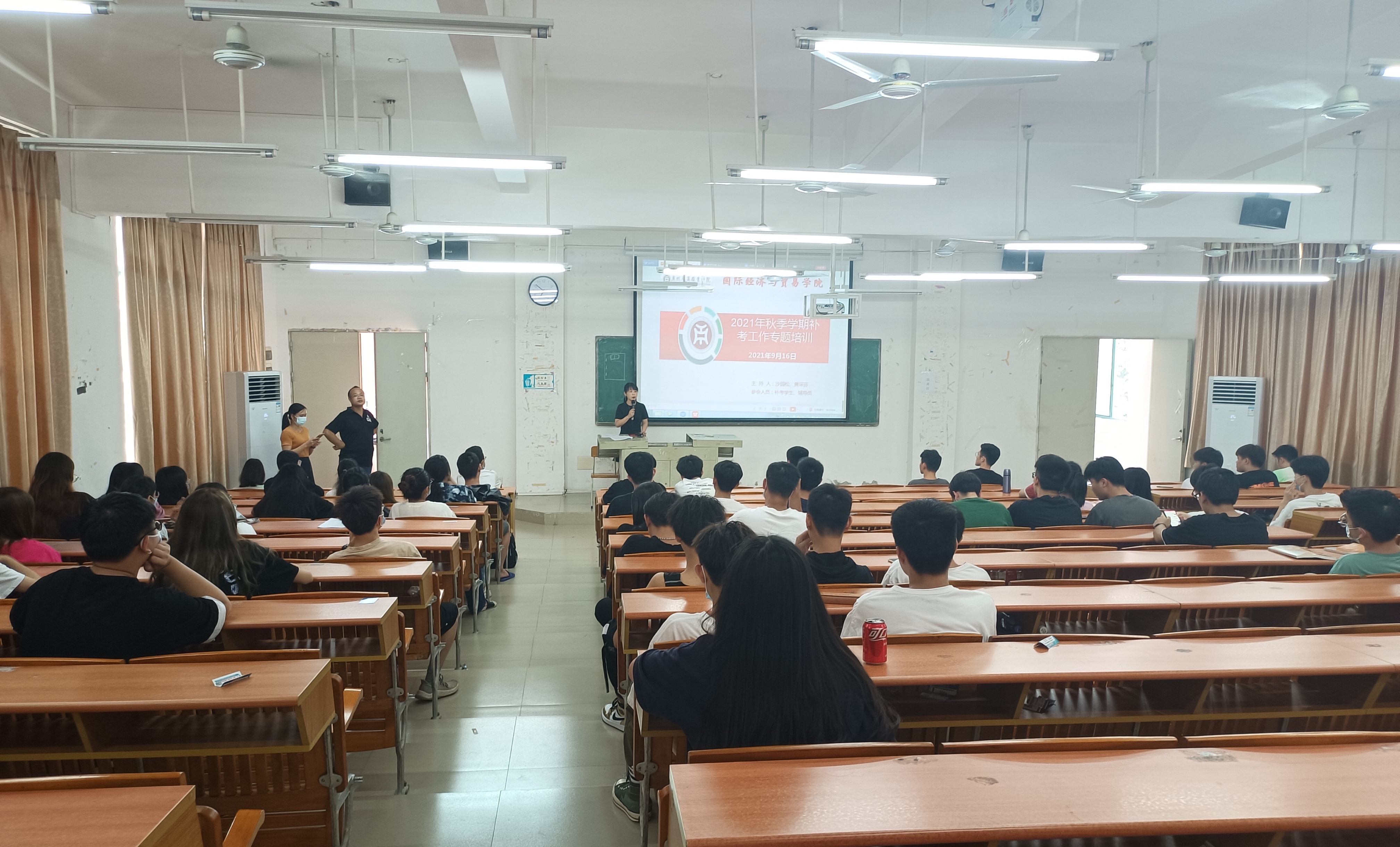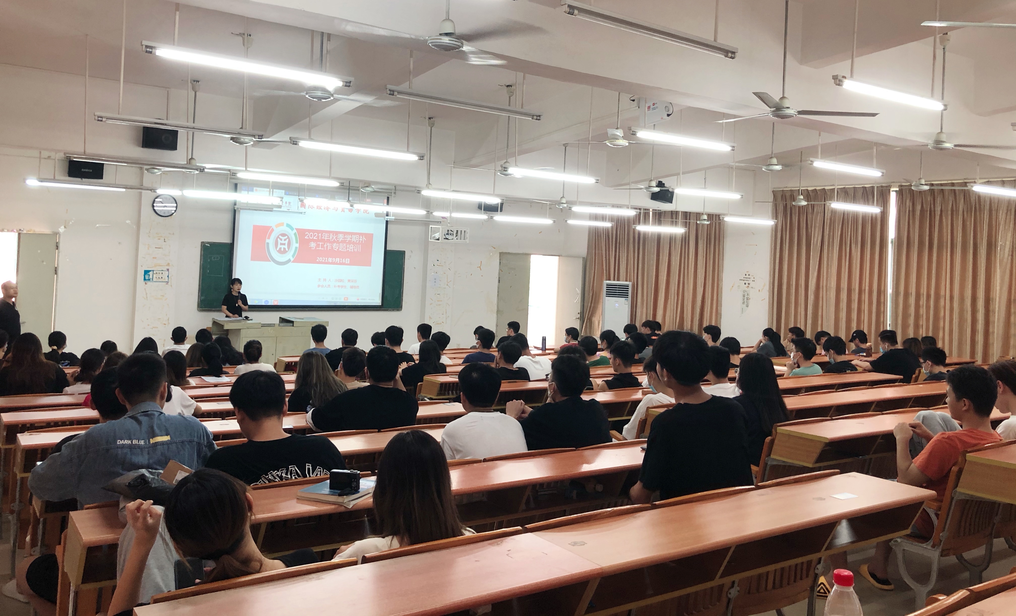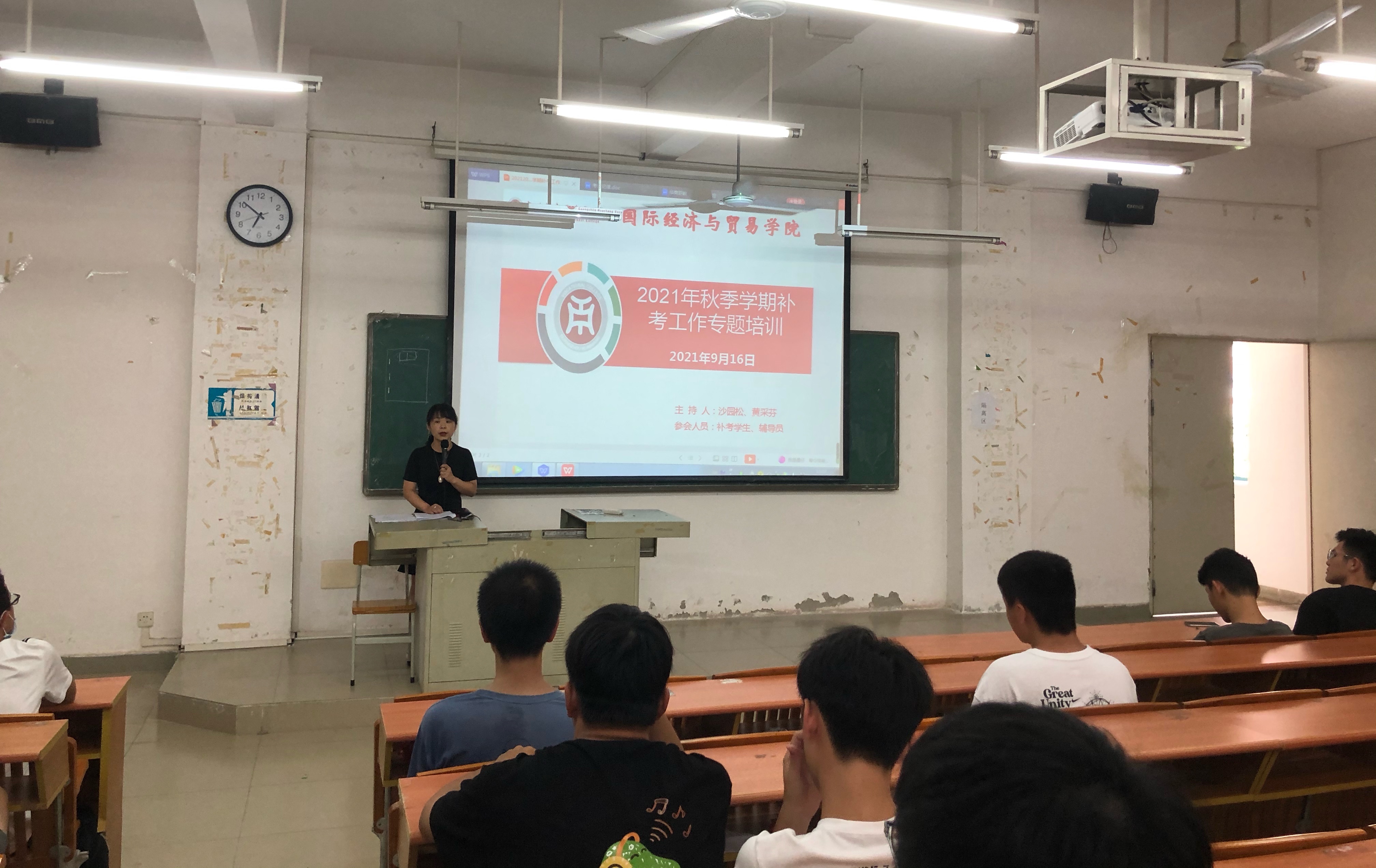 为加强学风建设,严肃考风考纪,确保教学质量,9月16日中午,我院2021年秋季学期补考工作专题培训会--学生考试动员大会在博C401课室顺利召开。学院领导沙园松副院长,教学秘书黄采芬老师,辅导员及所有参加补考的学生出席了本次会议。会议由沙园松副院长主持。