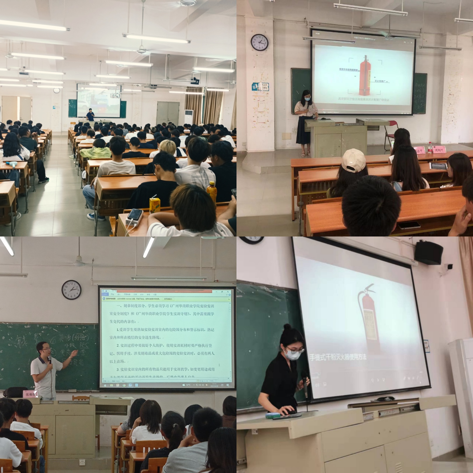大会围绕实验实训室管理入学教育和消防安全教育两方面主讲。会议中老师讲解了实验实训室安全教育管理详则,如规章制度、安全管理及应急措施等,并给2021级的新生们播放了消防安全主题教育视频,深入浅出地警醒广大新生,务必树立安全第一的思想观念。