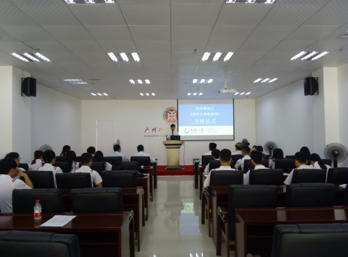 201661日上午10:00点,校企联动之“保险实战衔接班”开班仪式在崇贤楼一楼报告厅举行。我院副院长詹业宏、国贸系主任祁建、教务处副处长蔡小莲、中国人寿增城支公司总经理黄江萍、副总经理黄浩钊、人力专员胡福权、高级保险规划师易艳芳、谢碧梅及衔接班全体成员出席本次开班仪式。