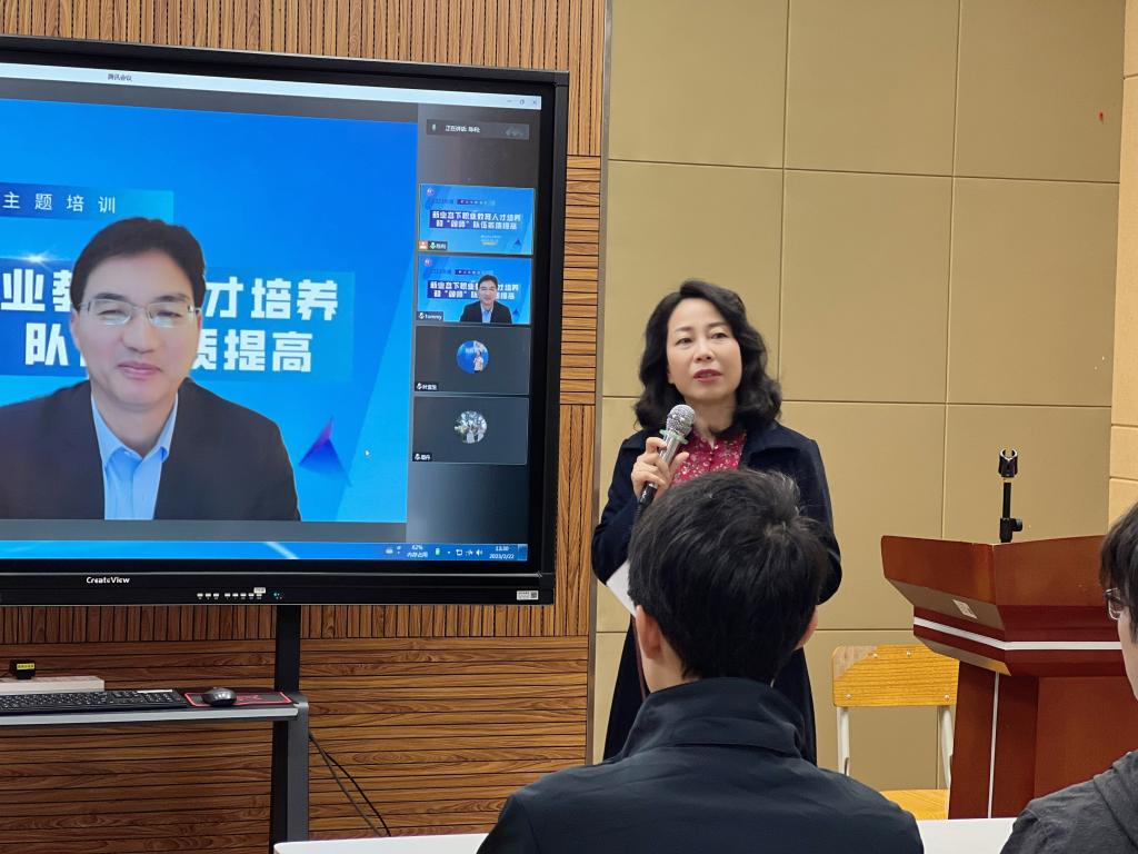 会议伊始,梁悦教授致辞感谢所有参会嘉宾及老师,她表示,疫情后新的开局之期,也是新的台阶和机遇,我们的教学改革育人实践与“双师”队伍素质提高是关乎人才培养质量的重要因素。优化教学内容,提升育人成效是我们秉持的目标,希望老师们借助培训的契机,认真学习,革新自身教学观念和方法,使教学能力和学科水平更上层楼,真正助力学生成才。