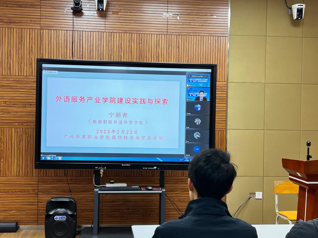 顺德职业技术学院外语外贸学院院长宁顺青教授、广东女子职业技术学院外语外贸学院院长李淑苹教授作为特邀讲授嘉宾出席会议,会议由梁悦院长主持。