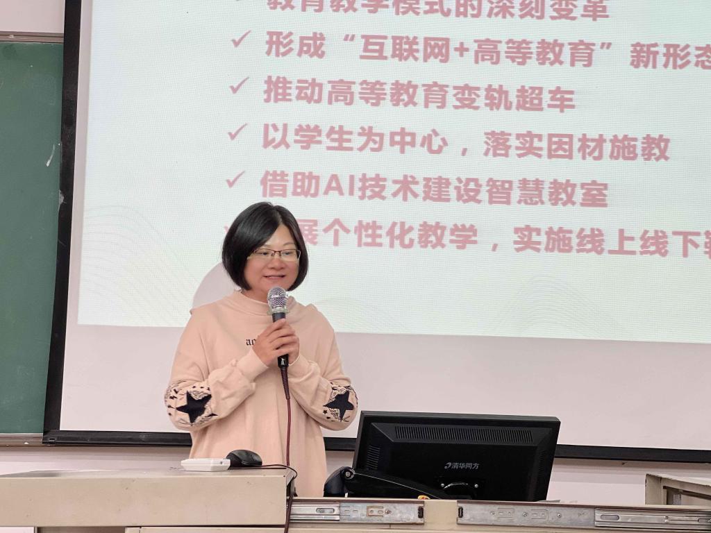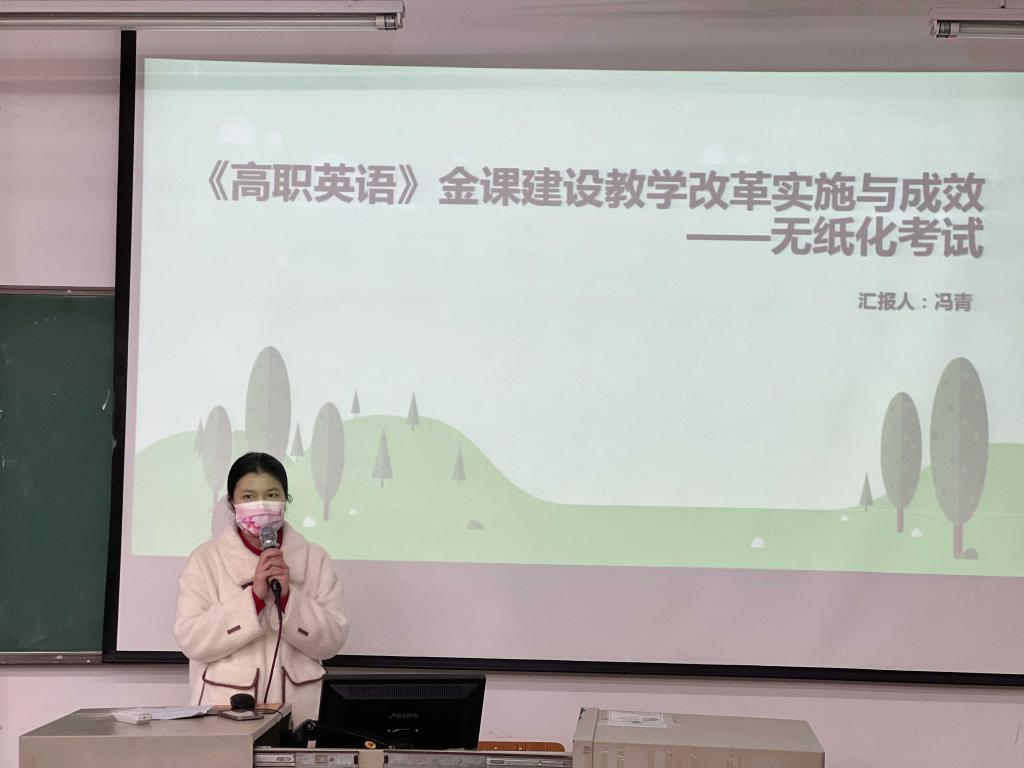 随后,大学英语教研室冯青老师以无纸化考试改革为主题,向大家从无纸化考试的理念、设计、执行过程、成效及意义等多个方面阐述了“金课”建设教学改革之无纸化考试的实施与成效。无纸化考试是一种具有前瞻性和实践性的考试改革方式,能够提高考试效率和准确性,为学生和教师提供更好的教学和学习环境。而且通过加强教师培训和技术支持,完善信息技术平台的资源库建设,学院可以顺应时代发展趋势,推进教育教学工作的创新和进步。