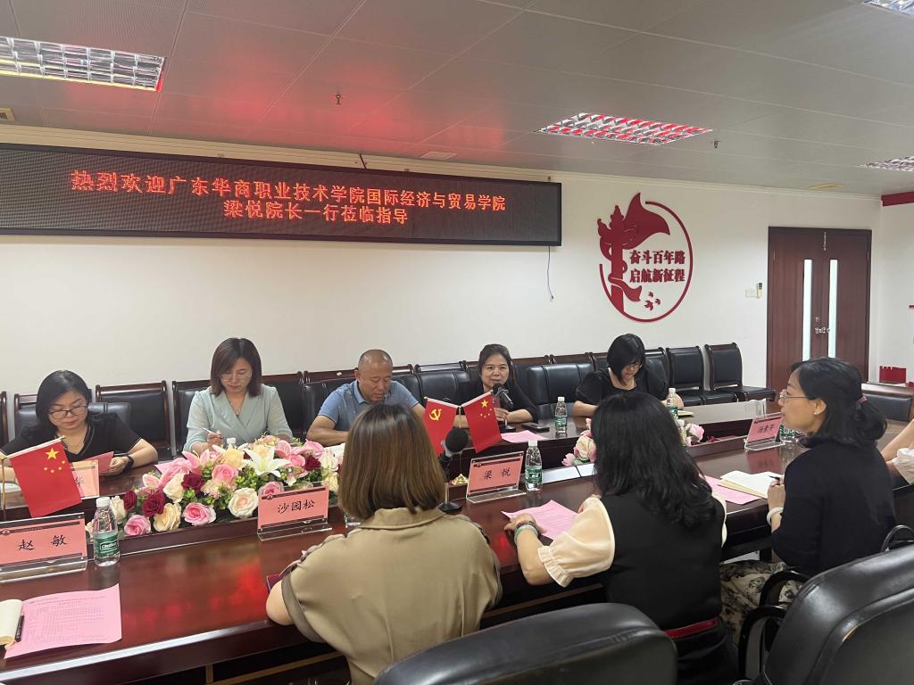 2023年6月15日下午,我院梁悦院长、沙园松副院长、张丽菠副院长、电子商务专业负责人赵敏和跨境电商专业负责人陆莹一行5人赴中山火炬职业技术学院开展专业群建设交流活动。中山火炬职业技术学院郭士富院长、国际经济与贸易教研室主任李福艳、电子商务教研室主任李巧丹以及教师党支部书记杨华等做了热情接待。