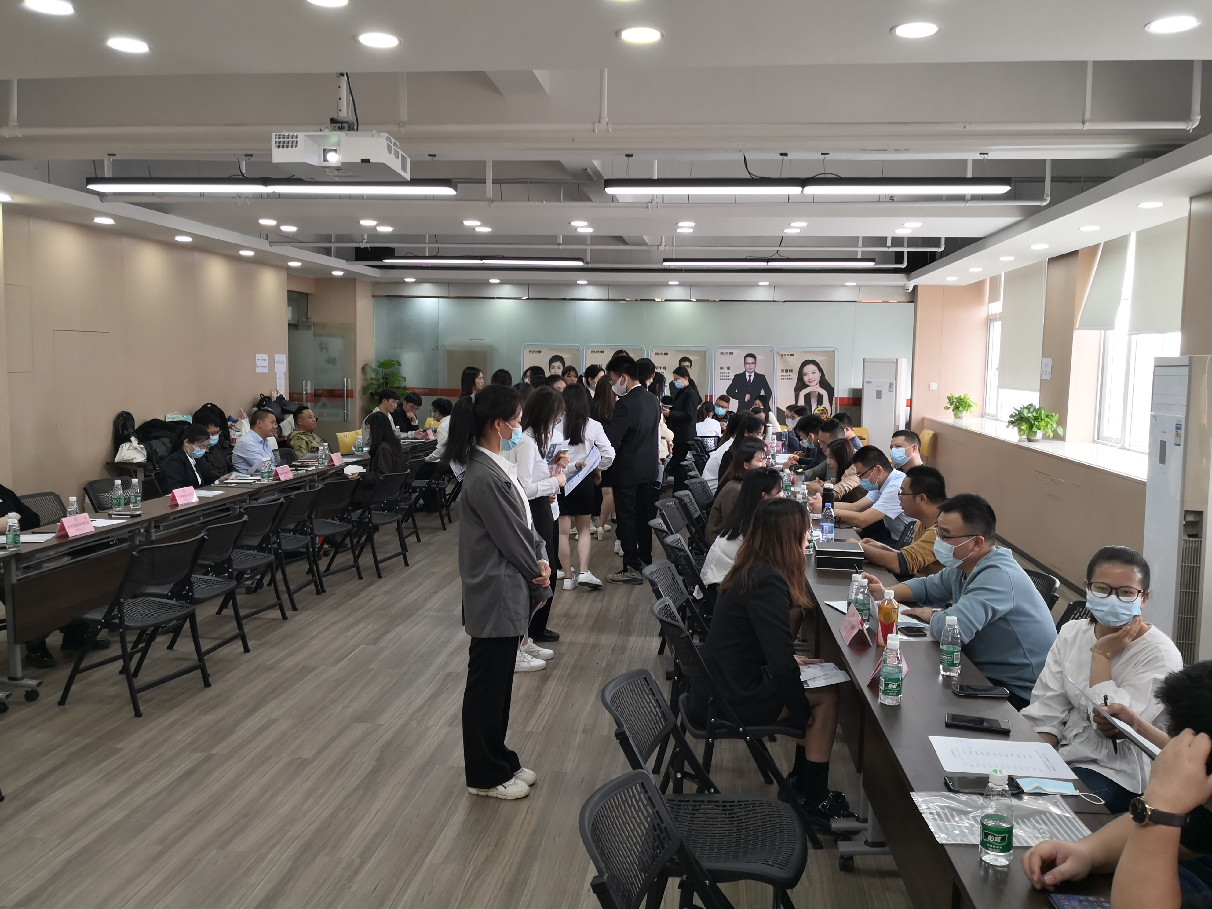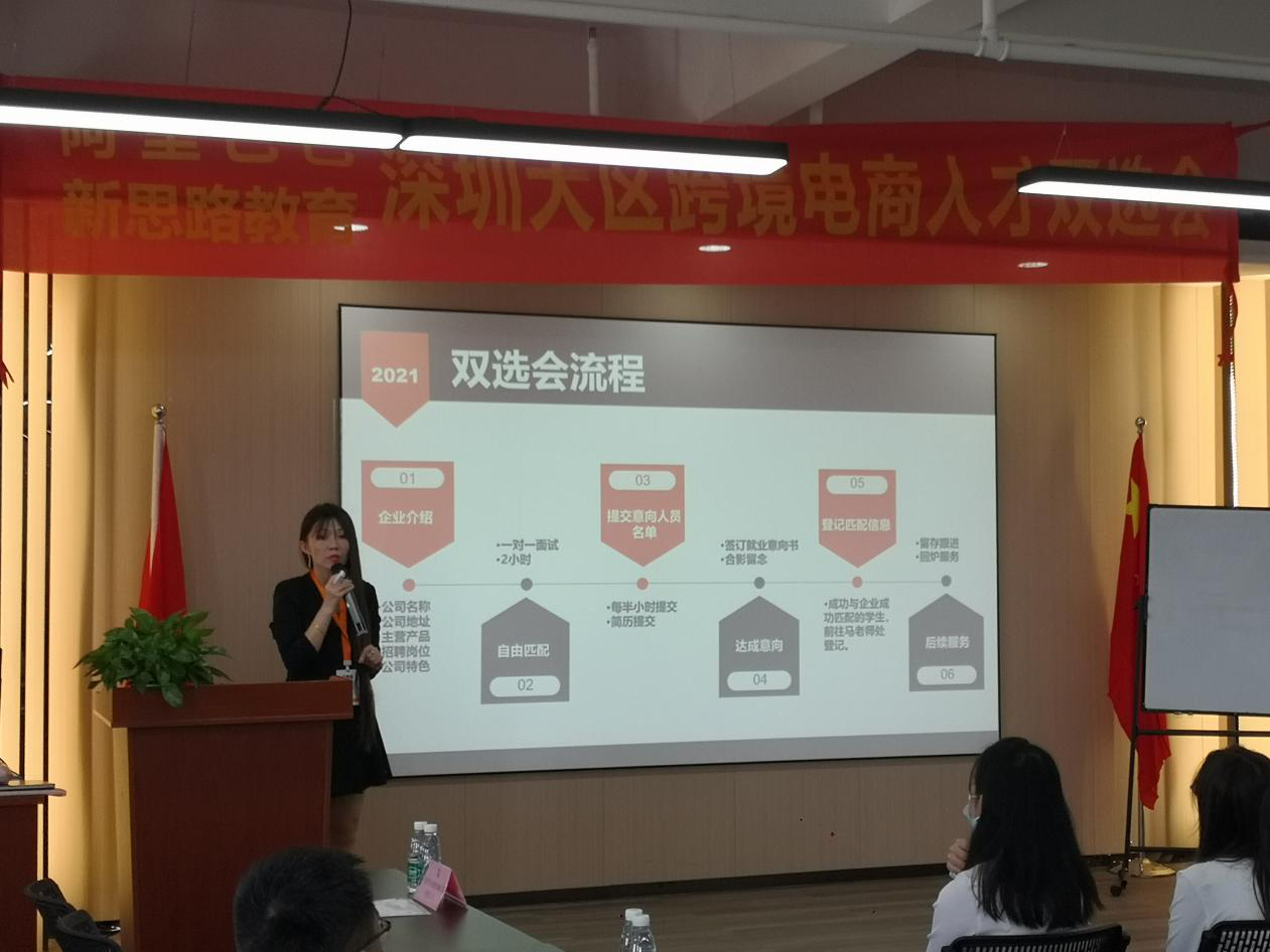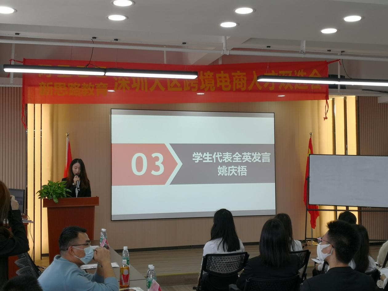广州新思路教育科技有限公司对我院师生一行热情接待。双选会开始前,由新思路教育负责人马茜茜认真向大家讲授面试技巧和细节,并且介绍了双选会的流程,给大家传授经验,与学生互动交流。随后,我院19商务英语5班姚庆梧作为学生代表发言。