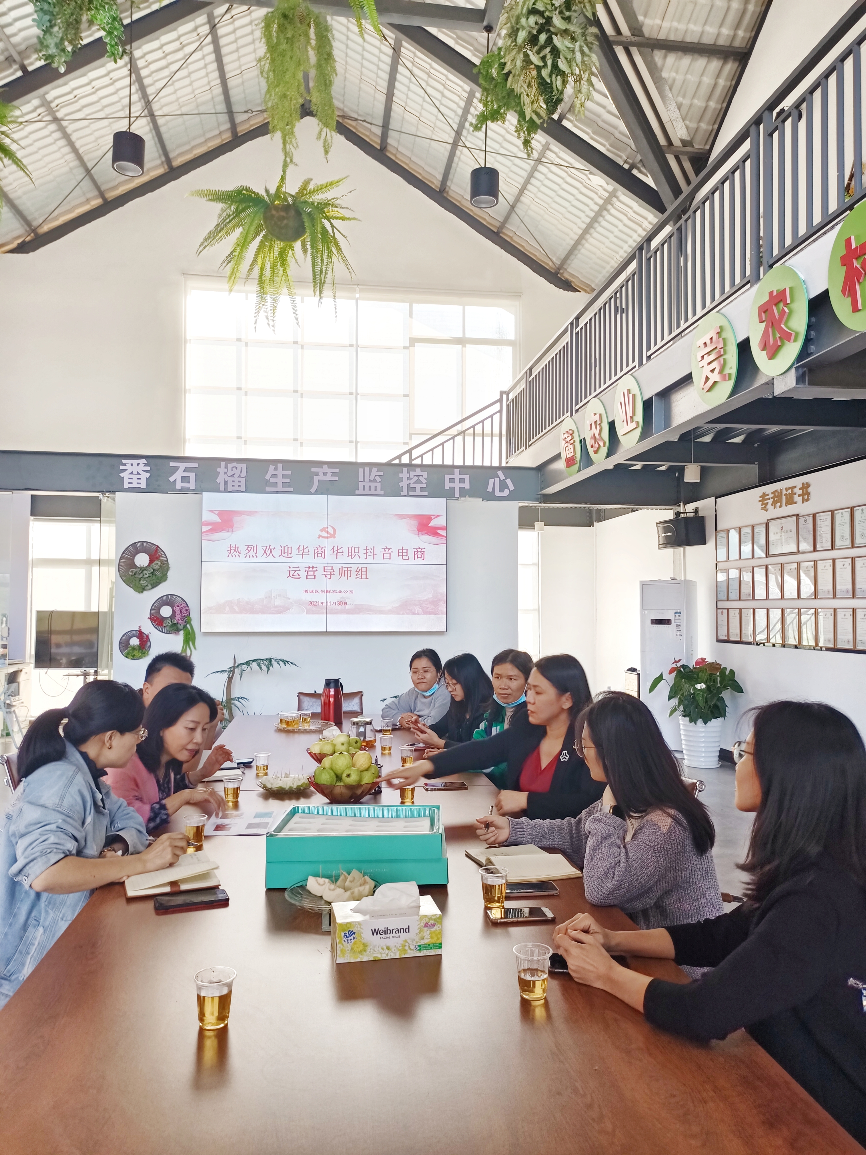一,讨论当季水果番石榴的运营推广细节,及其它不同水果的宣传销售定位。双方基于学校和农业产业园优势,讨论其直播面向群体、产品品牌定位、运营统筹、团队构建等问题,并计划立即启动番石榴直播。希望协力打造有品质、有影响力的大学生助农直播团队,共同做好增城区助农直播事业,联合推广增城区特优农产品,增强农业发展生命力和持续发展潜力。