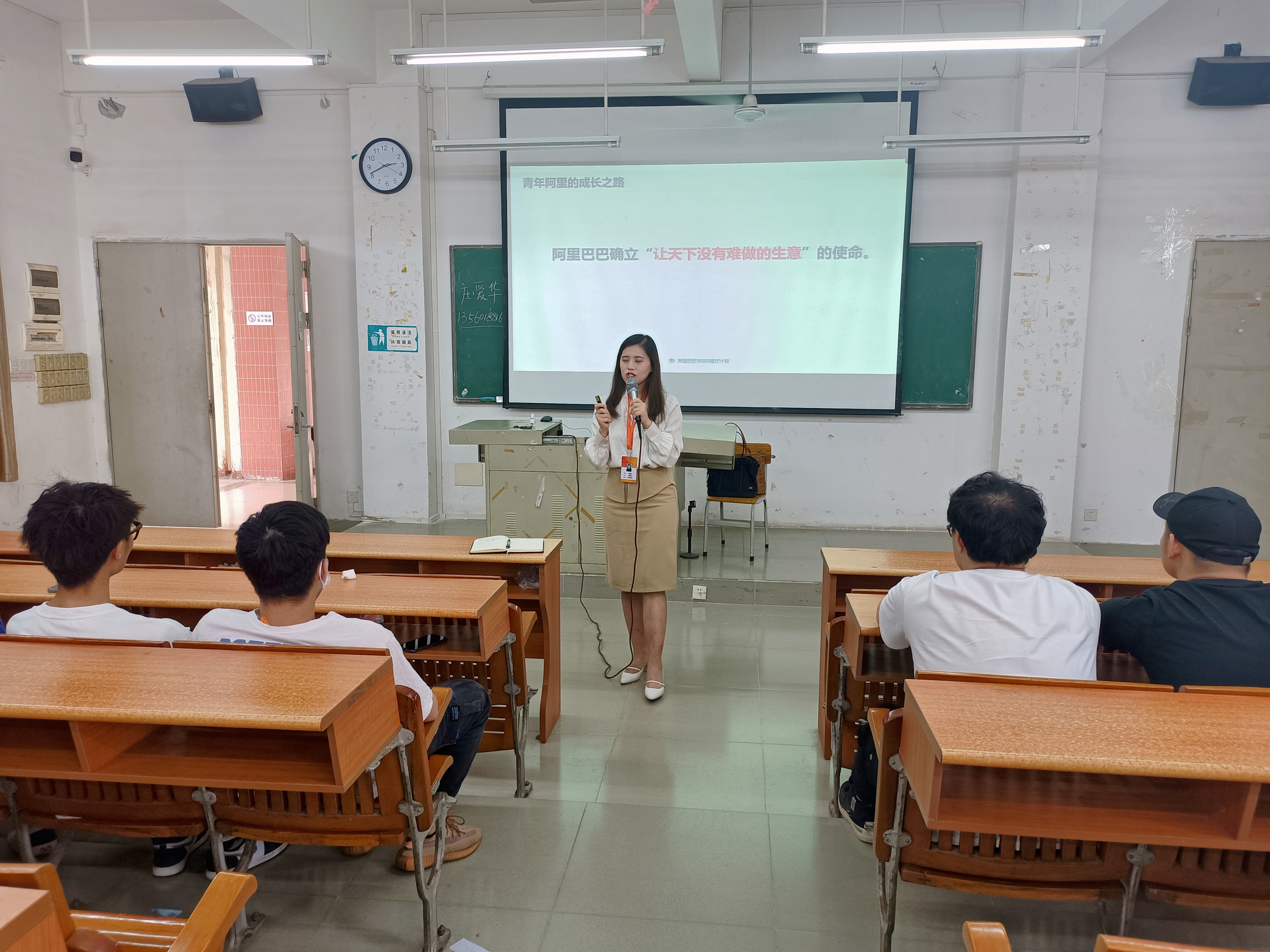 陈老师首先简介了新思路教育,并对两位的到来表示热情欢迎和感谢。宣讲会开始,主讲老师吴海珍通过视频、PPT展示,介绍新思路教育企业文化、荣誉及合作单位,结合国内电商市场现状尤其是电子商务的新需求,对电商专业就业方向和岗位要求进行了分析指导。随后重点介绍其1688电商平台精英班人才发展项目,对开班流程、模块、人才双选会等信息,进行详细宣讲。