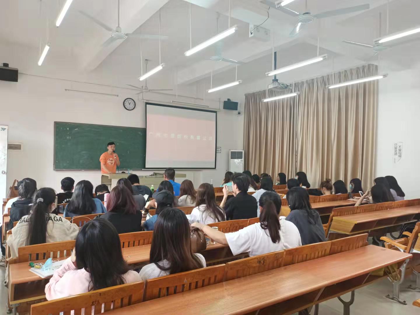 陈老师首先简介了七哥纺织公司,并对三位的到来表示热情欢迎和感谢。宣讲会上,蒋总着重介绍公司发展历程和荣誉愿景等,分享直播电商行业市场现状与发展趋势,对公司需求和优势、人才发展计划及薪资待遇福利等各方面信息,进行详细宣讲,并与学生积极互动。