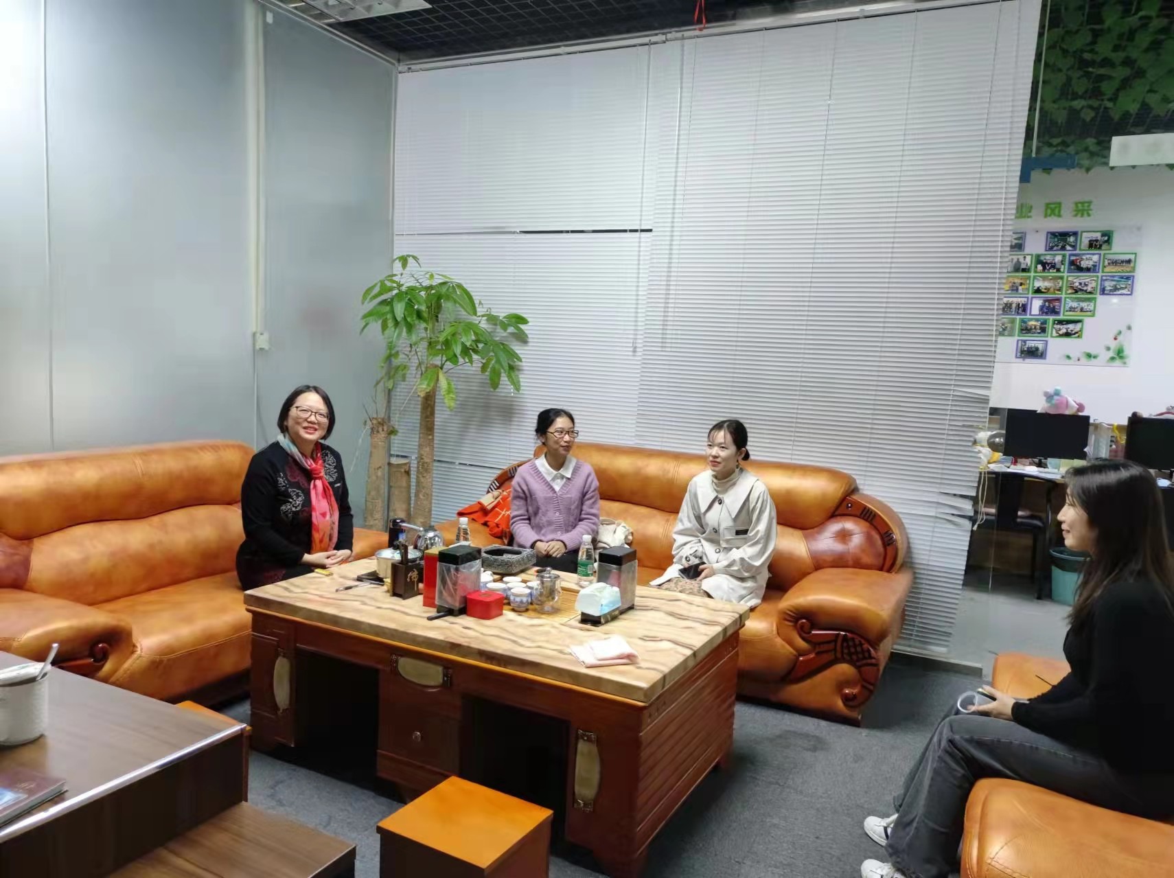 九叶灵枝现代学徒制对接人杨女士对两位老师的到来表示欢迎,双方就人才培养事宜进行了友好的交流。随后,黄翔老师与学生进行了亲切的交谈,详细了解其学习和工作上的情况,给予建议与鼓励。