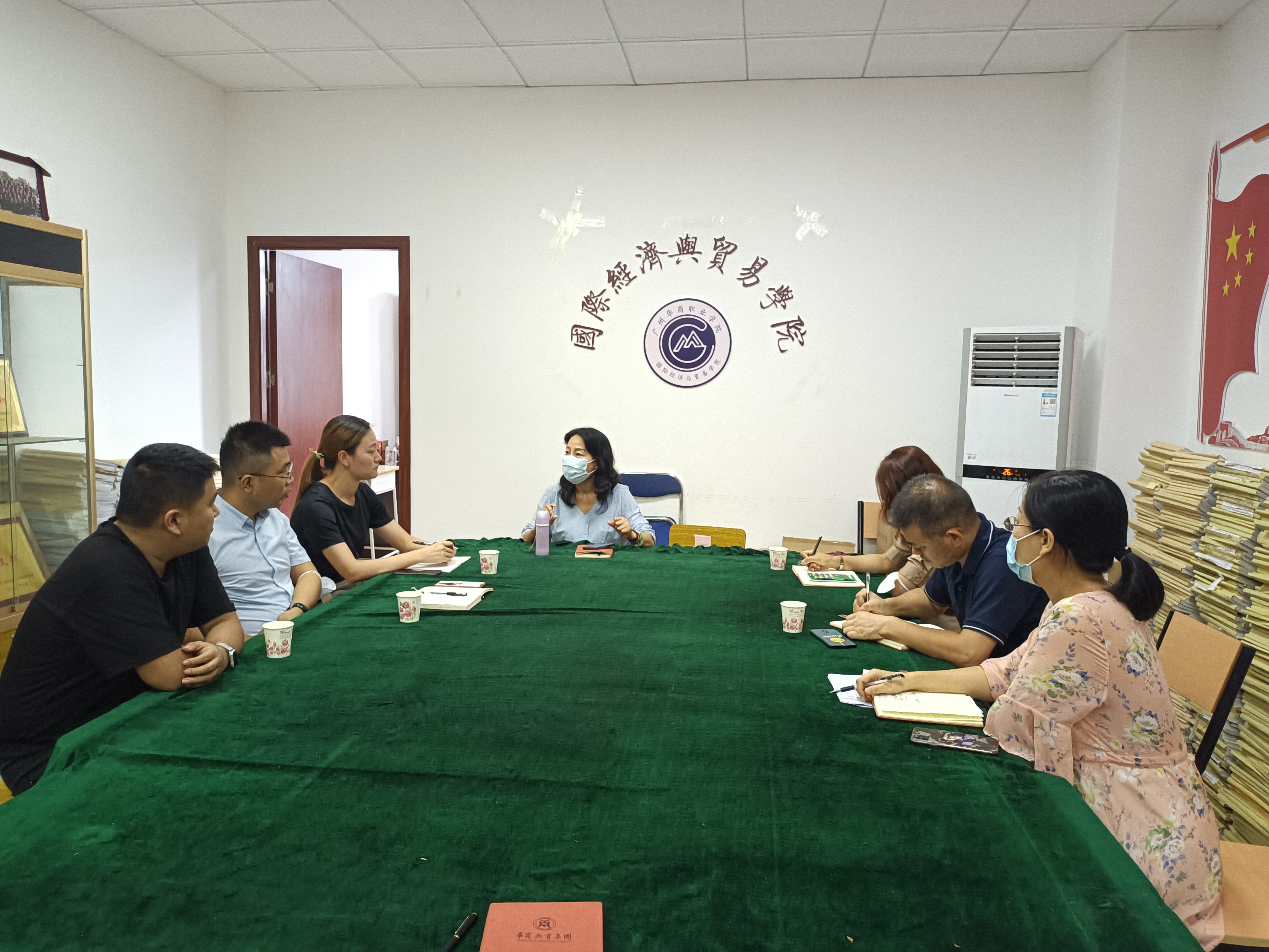 9月22日下午,黄埔区大湾区数字娱乐产业园的娱加娱乐传媒有限公司林杰东副总经理、曾炀、邓玉婷一行三人到我院就校企合作方面进行交流洽谈,国际经济与贸易学院院长梁悦、副院长沙园松、副院长张丽菠、行政秘书陈利,校企合作办主任钱芳、副主任郑明华参加了此次洽谈。