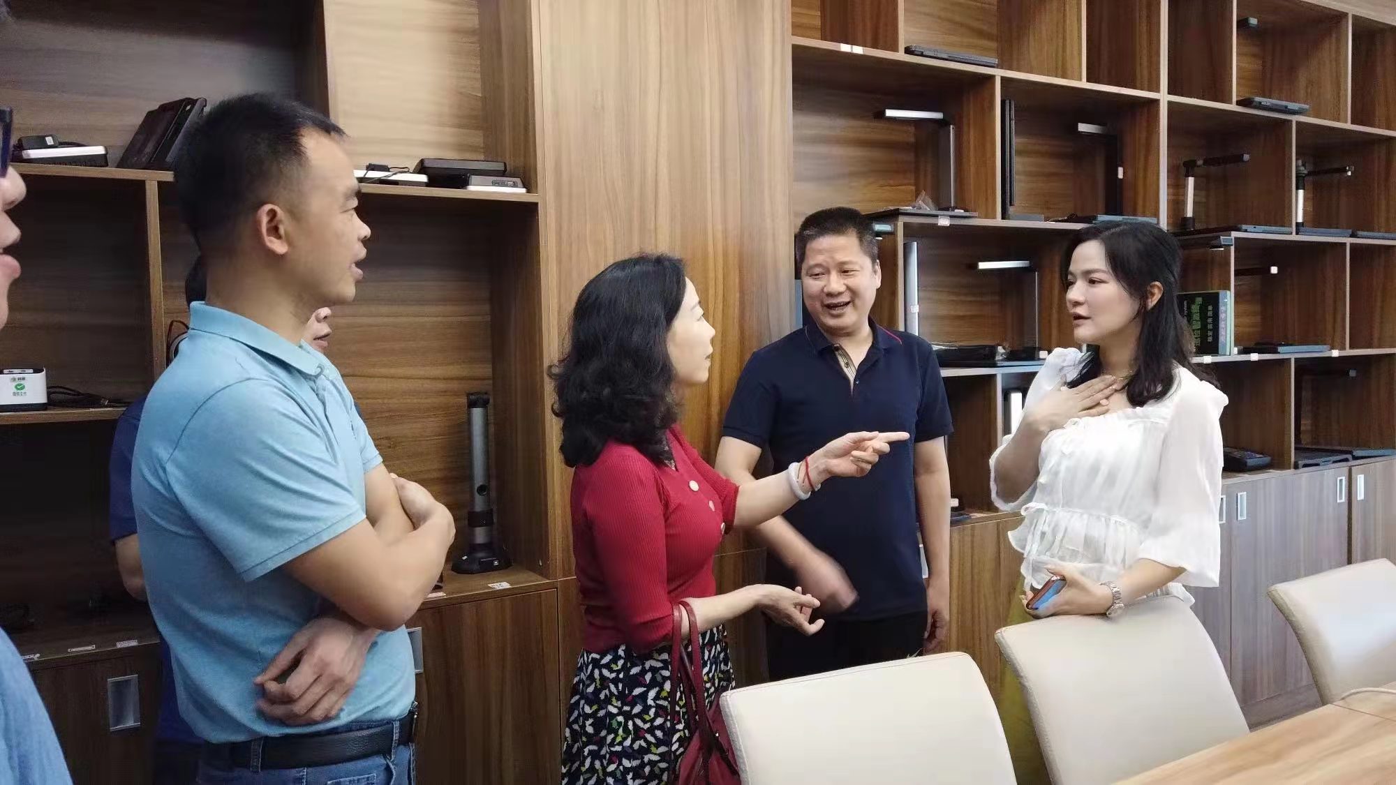 增城区直播电商协会会长、广州红象文化传播有限公司董事长朱燕妮对本次来访表示欢迎,随后双方就直播电商领域的行业趋势、人才培养、校企合作等方面进行了深入的探讨和沟通,并达成了初步合作意向。会后朱燕妮会长带领参观了增城区直播电商协会的几家会员企业。