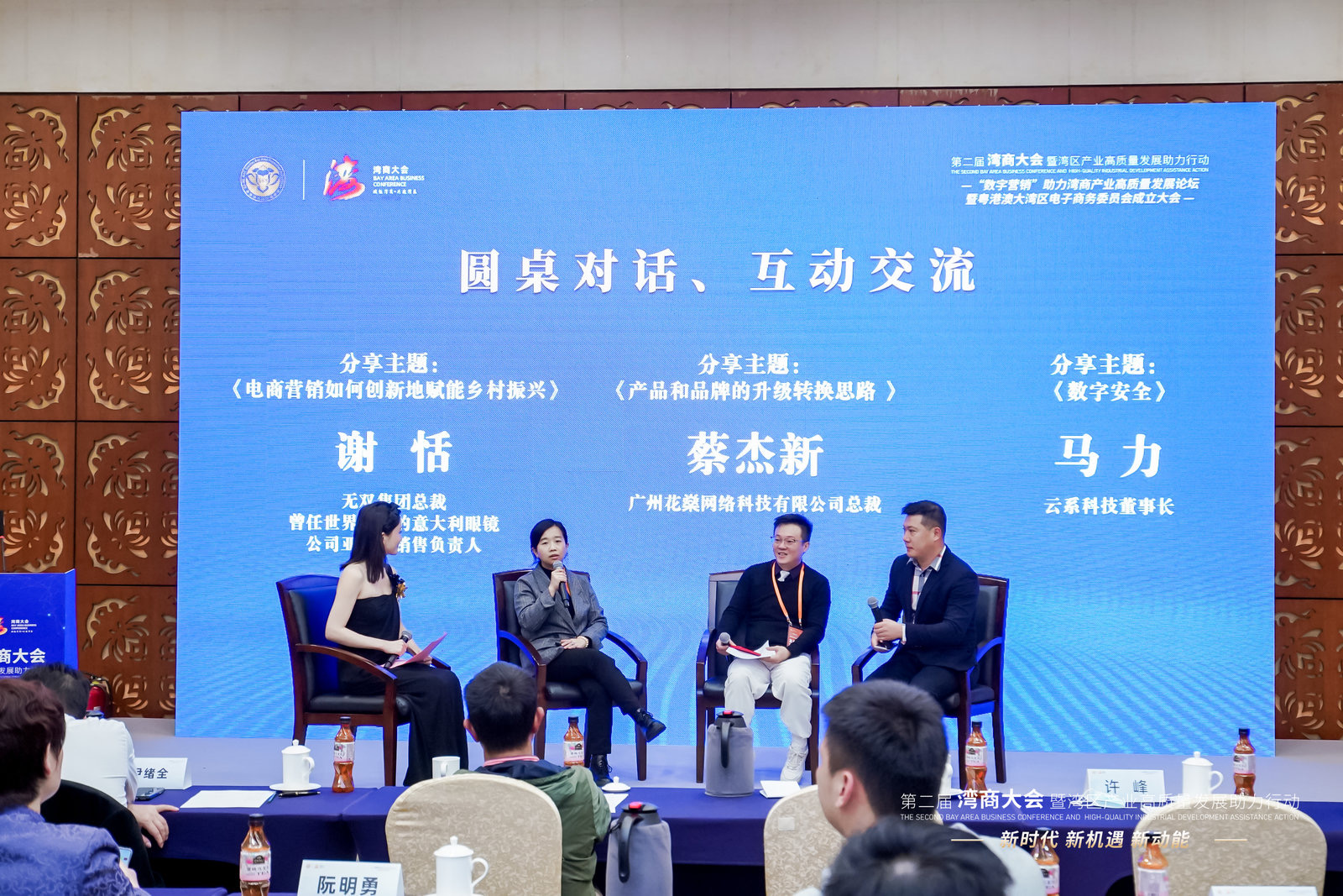 除了主题演讲外,圆桌对话互动环节也非常精彩。参会嘉宾们围绕电商营销如何创新地赋能乡村振兴、产品和品牌的升级转换思路、数字安全等话题展开了热烈讨论,他们分别就这些话题提出了不同看法,共同探讨如何更好把握数字营销发展浪潮,探索推动大湾区产业、经济的高质量发展。