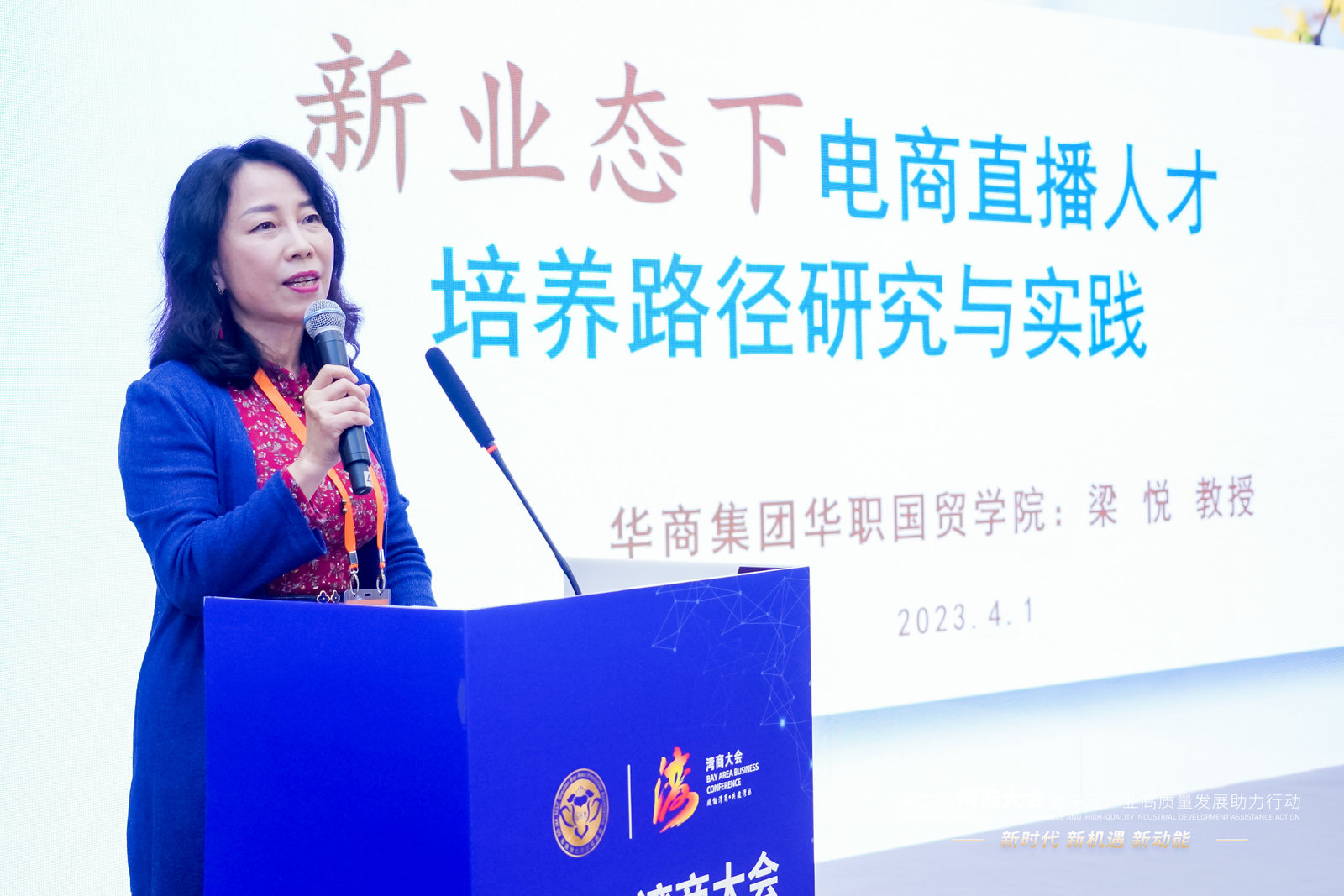 随后由广州华商职业学院国际经济与贸易学院的梁悦教授发表题为《新业态下电商直播人才培养路径研究与实践》的重要报告。梁院教授通过解读中国电子商务发展趋势报告和中国乡村数字经济主要发展政策等,深度剖析社交电商、直播电商等新业态发展给中国经济和农村经济带来的新增长和新机遇。她指出,数字经济具有高创作性、强渗透性和广覆盖性,是改造提升传统产业的支点,也是构建现代化经济体系的重要引擎,应该不断探索创新粤港澳三地经济合作机制、合作模式,从而为全国数字经济合作提供鲜活经验和发挥示范引领作用。报告最后,梁悦教授展示了广州华商职业学院近几年在电子商务人才培养方面所取得的宝贵经验,特别总结了广州华商职业学院“一核心、两能力、三技术”在电子商务人才培养的创新模式和经验,以直播电商赋能乡村振兴,发挥高校在社会传播中的引导作用。