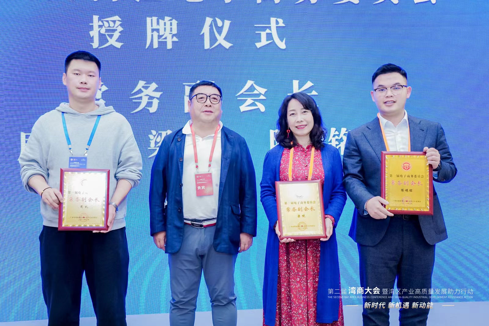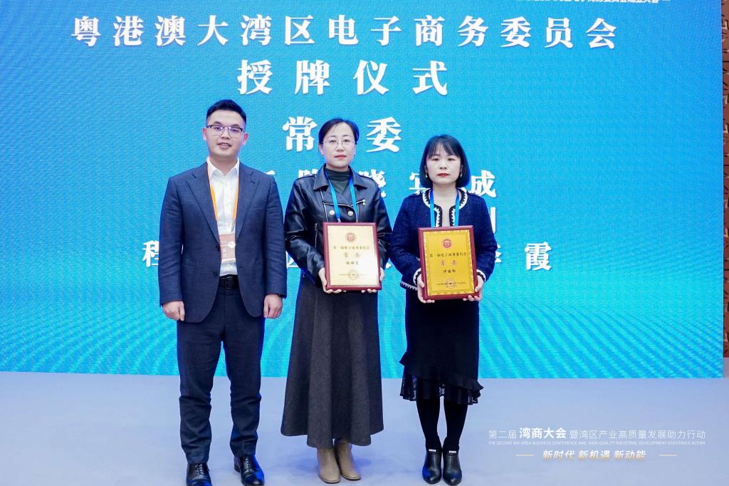 此外,本次论坛还隆重举行了粤港澳大湾区电子商务委员会授牌仪式。其中广州华商职业学院国际经济与贸易学院院长梁悦教授受聘为粤港澳大湾区经济文化促进会电子商务委员会常务副会长;沙园松副院长、张丽菠副院长受聘为粤港澳大湾区经济文化促进会电子商务委员会常务委员,赵敏、高湛、廖卓艺受聘为粤港澳大湾区经济文化促进会电子商务委员会委员。电子商务委员会对我校在电子商务人才培养的成效予以高度肯定。委员会的成立将为大湾区企业的数字营销发展提供一个专业化平台,整合优势资源,把企业的发展势能凝聚成经济高质量发展的助燃剂。我校积极融入电子商务委员会,也将打开校企联动新格局。