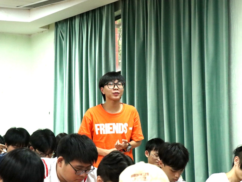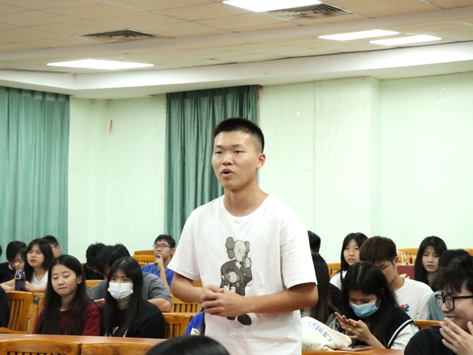 接着,秘书长陈友军分享了自己创业初期的经历,进一步让同学们认清自己,找准定位。同时,他与同学们积极互动,围绕“面试时桌面上放着一碗米饭该如何去看待”这一问题展开讨论,从对话中循循善诱,启发同学们发散思维思考,从问题中寻找创新创业灵感,拓宽了同学们的眼界和知识面。