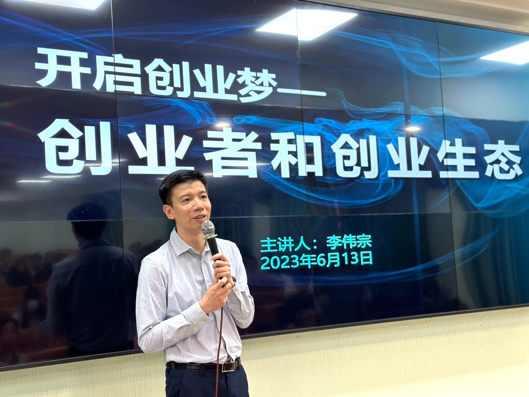 随后,秘书长李伟宗从创业者的灵魂思考、创业生态和创业者视野三方面展开讲述,向同学们介绍了创业所需要具备的条件,让大家较为系统地了解了如何创业。