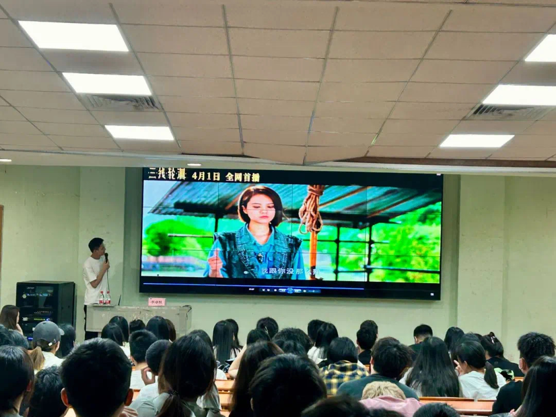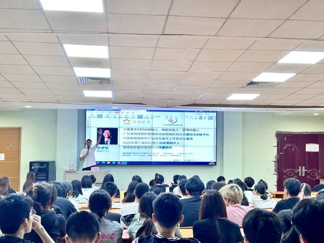 接着李卓恒老师以幽默风趣的讲课风格,迅速吸引了在场学生的兴趣。为了更好地引导学生进入课堂氛围,李老师播放了他的网络电影代表作《三线轮洄》片段,不仅展示了他在网络影视领域的专业实力,也成功点燃了课堂的积极气氛。