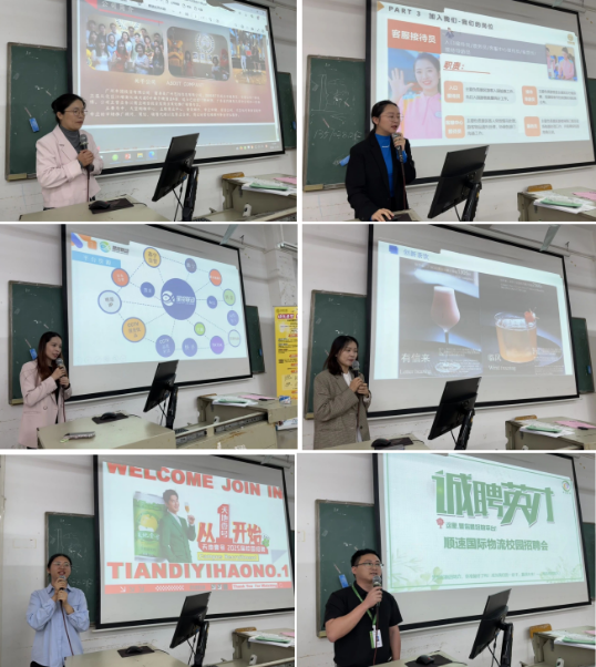 各企业代表先后进行宣讲,详细介绍了企业详情、招聘职位信息,解读就业相关政策,提供就业指导和职业规划建议,帮助学生了解当前的社会就业现状等。