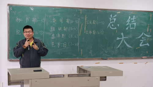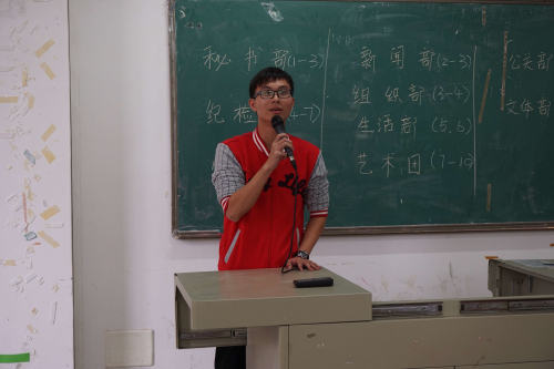 大会由主席团成员张华健主持。会议伊始,指导老师吴仕坚上台发言,对一学期以来为国贸系各种活动辛苦付出的全体成员进行鼓励,对过往的一系列活动进行了评价,并且对下学期的活动作了简述,希望大家积极主动参与。接着各部长依次上台对本部门的工作进行总结,指出干事们工作中的不足,对好的地方进行肯定,希望所有干事都能保持最初的热情与干劲!最后由主席团成员:林婉、曾晓斌、张华健分别上台进行最后的总结发言,他们希望干事们注意礼貌问题,提高工作积极性,在来年的工作中再接再厉,再创佳绩,把国贸系的各项活动办的更加精彩!