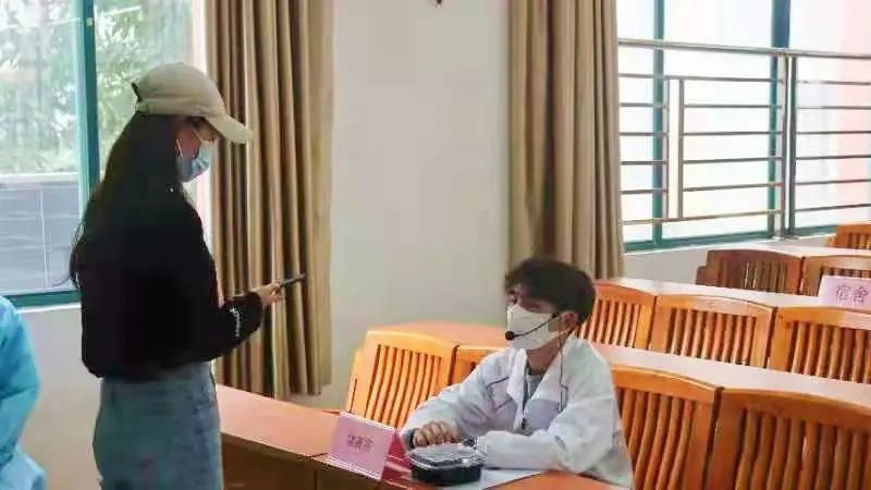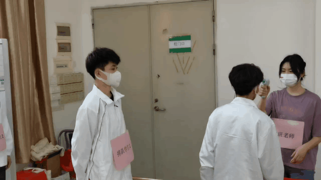 老师稳定学生情绪后,马上打电话汇报学校防疫防控小组主任。主任指示值班老师组织现场秩序,并让其他同学保持安全距离。