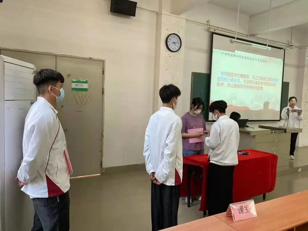 学院领导马上将情况报告学校防疫防控小组主任,主任指示目前在该宿舍的相关人员原地待命,辅导员组织现场秩序,并马上通知医务室、后勤保卫处相关负责人员,迅速前往宿舍处置。学生退热48小时候后凭诊疗记录经学校医护人员审核后复课,恢复正常状态。