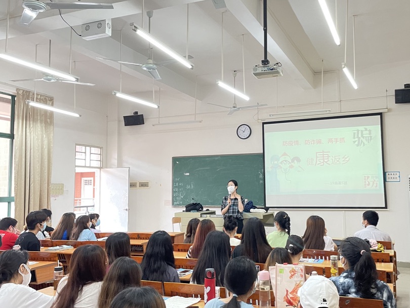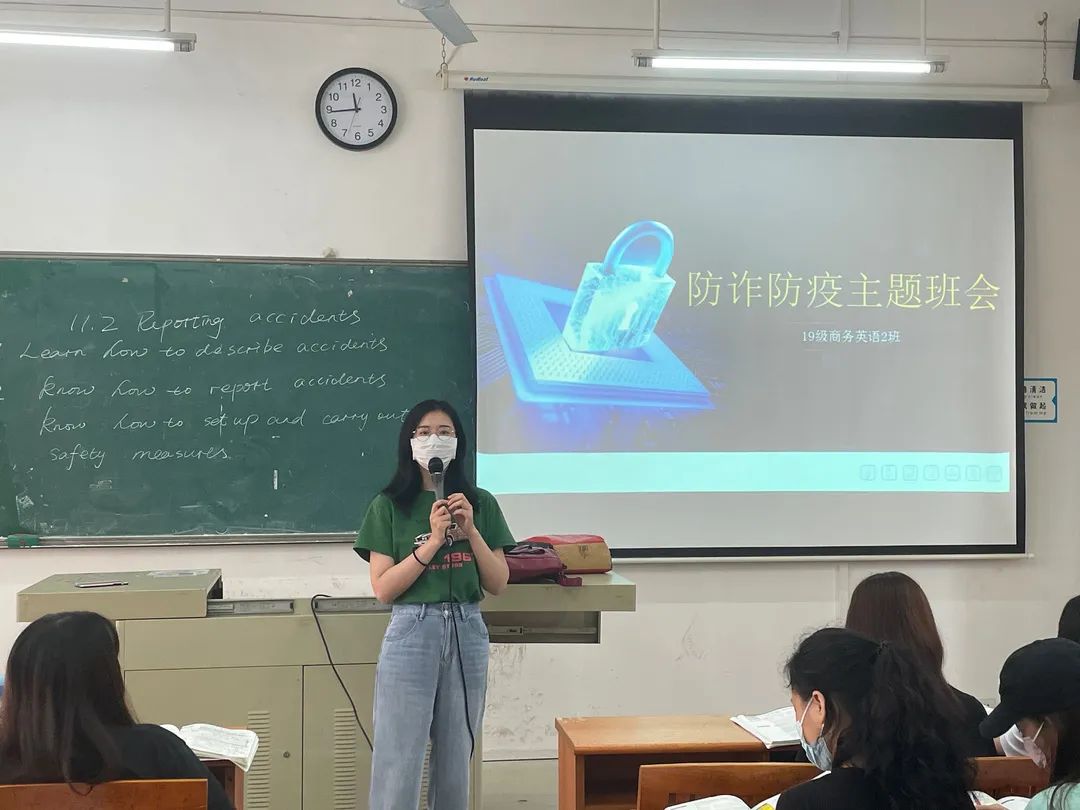 为了进一步夯实疫情防控工作,维护校园秩序安全稳定,提高学生自我安全防范意识,以及做好期末考试各项事项。国际经济与贸易学院于第17周开展“防疫防诈不掉心,注意事项要牢记”主题班会活动。班会由各班辅导员主持,全体学生参加。