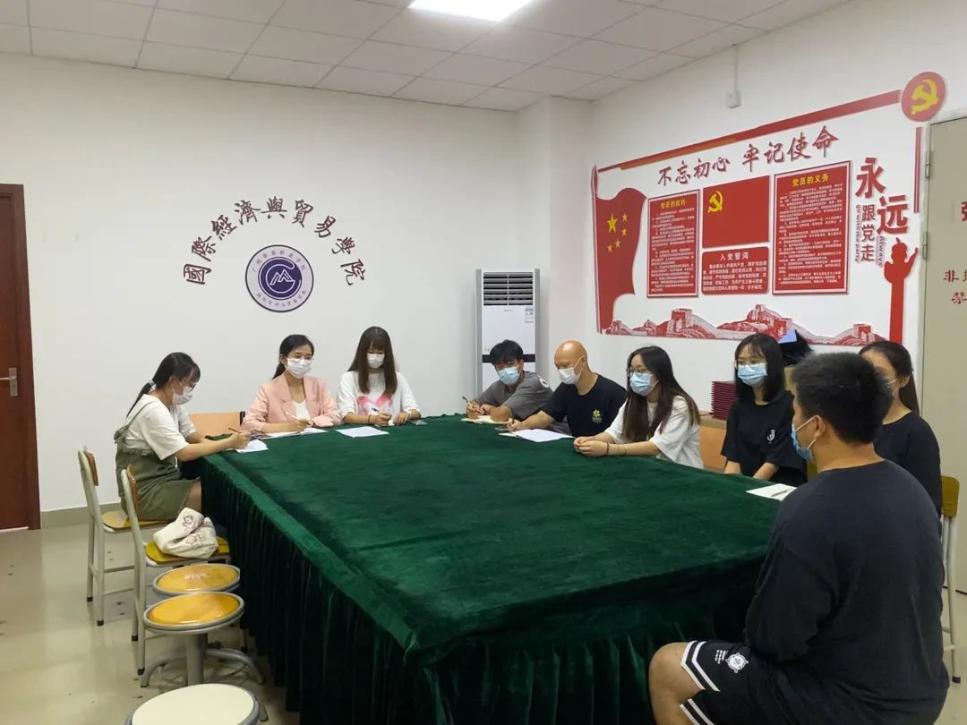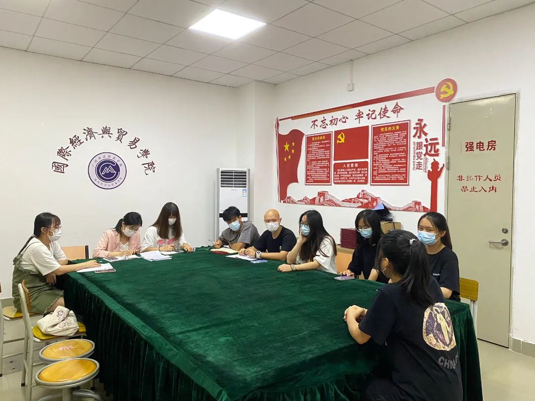 为了进一步推动我院团总支学生会的发展,培养出一批高质量、高水平的学生干部,确保团学工作有序开展。我院于2021年6月28日中午在博学楼B407举行国贸学院团总支学生会主席面试。本次面试由团总支书记余锋老师、学生会指导老师张雅茹老师及主席团、部长团担任面试官。