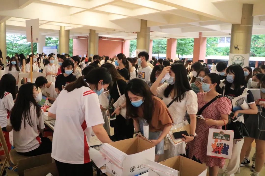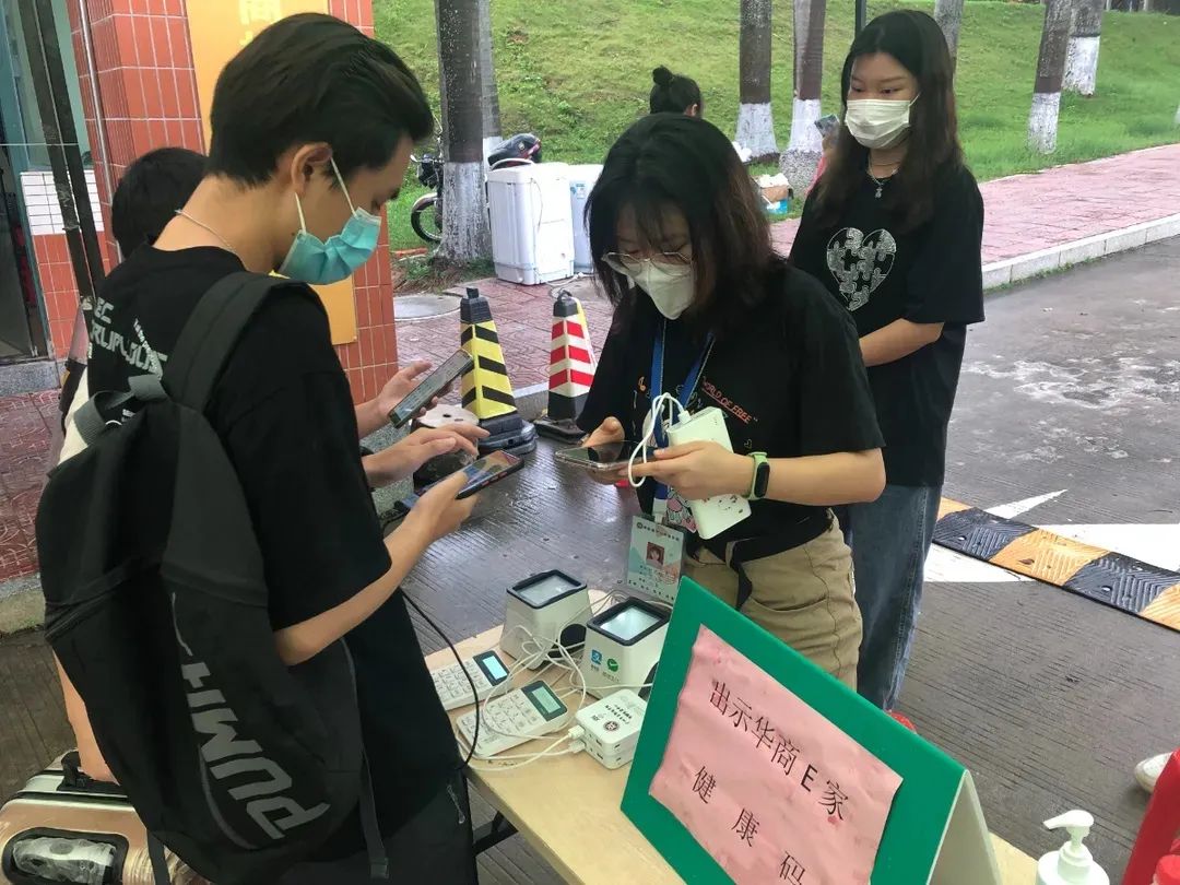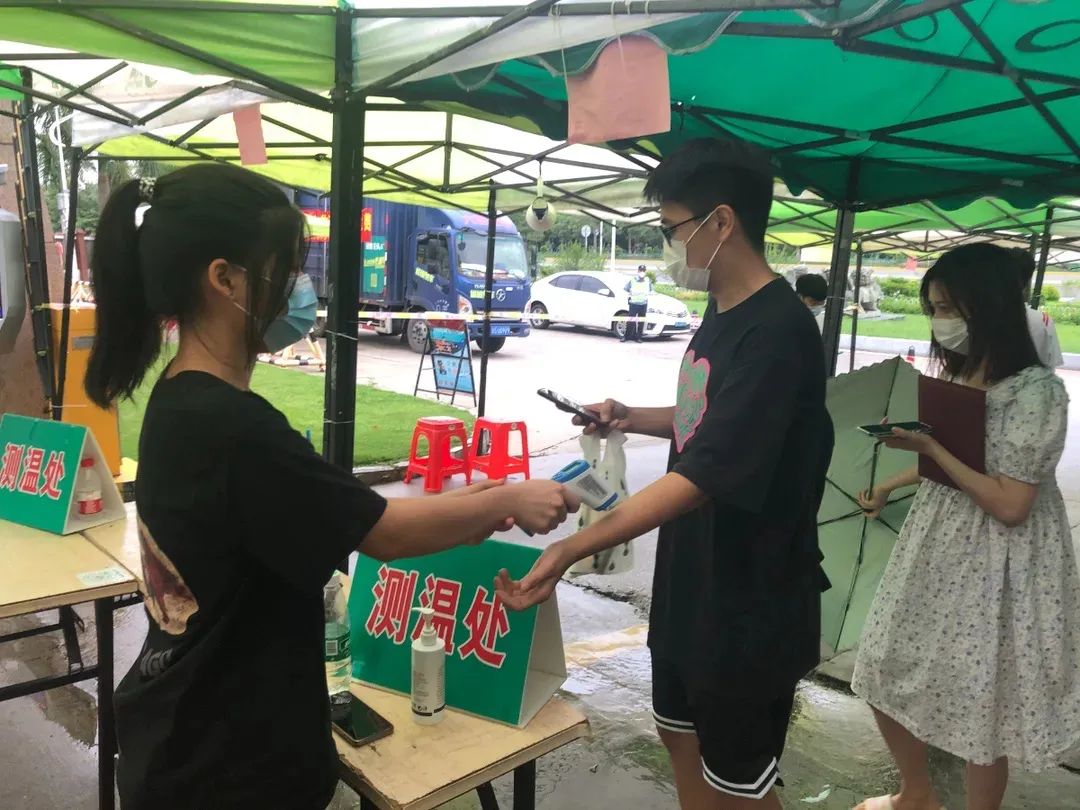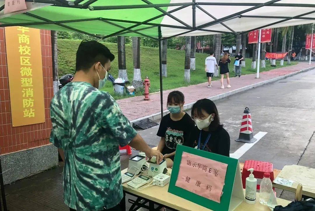 2021年6月29日,2021届国贸毕业学子返校领取毕业证书,为配合学校疫情防控工作,进入校园前需测量体温以及出示华商E家健康码。
