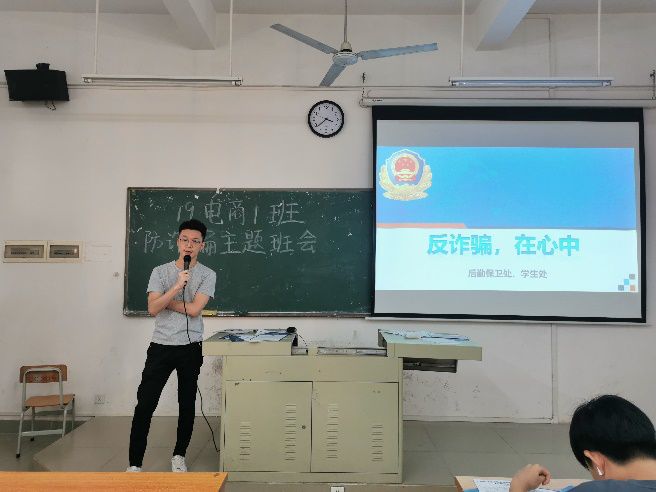 为了进一步推进平安校园建设,增强学生的反电信诈骗意识,加强在生活中自我预防、自我保护、自我应对的能力。国际经济与贸易学院于第11周组织全院班级召开防范诈骗主题班会。班会由各班辅导员主持,各班级全体学生参加。