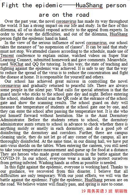 “华商校园防疫故事”英语征文比赛结果出来啦!