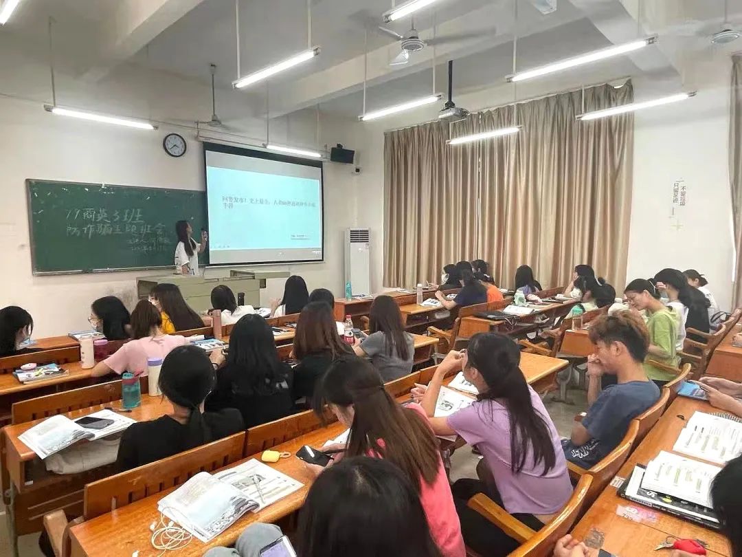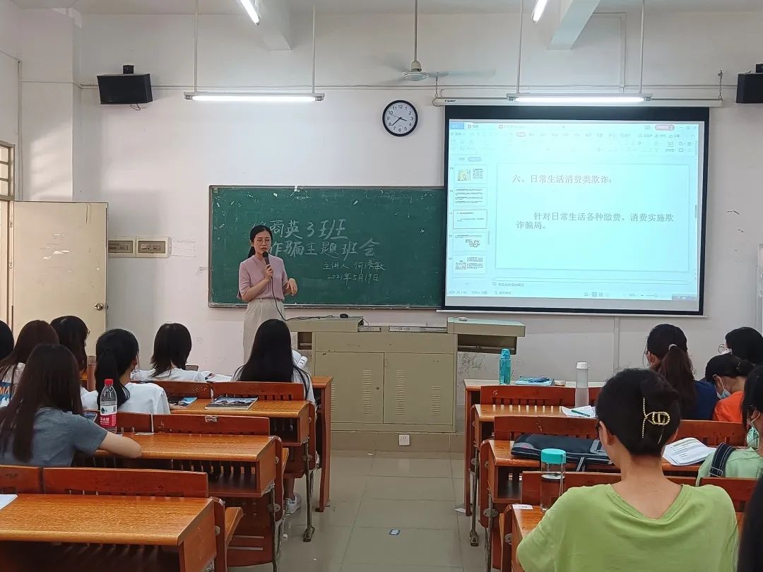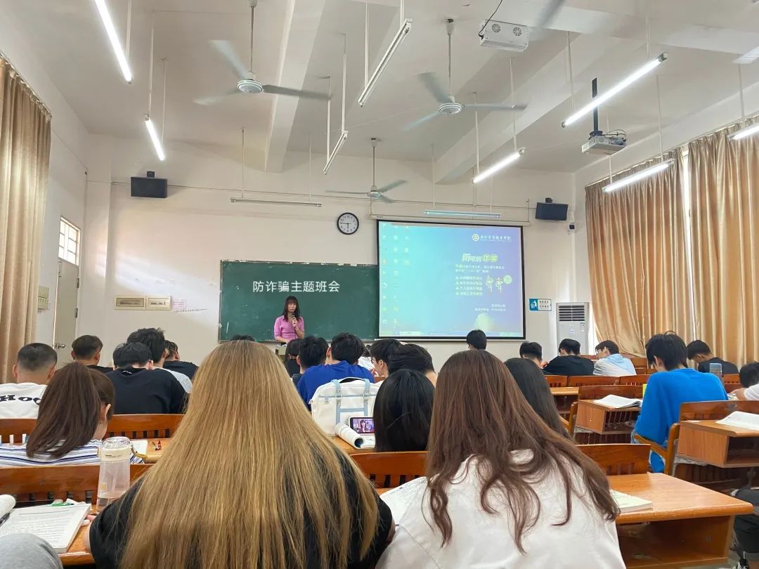 为了切实做好防范电信网络诈骗宣传教育工作,进一步增强学生的安全防范意识,国际经济与贸易学院于第12周组织全院班级召开防诈骗主题班会。班会由各班辅导员主持,各班级全体学生参加。