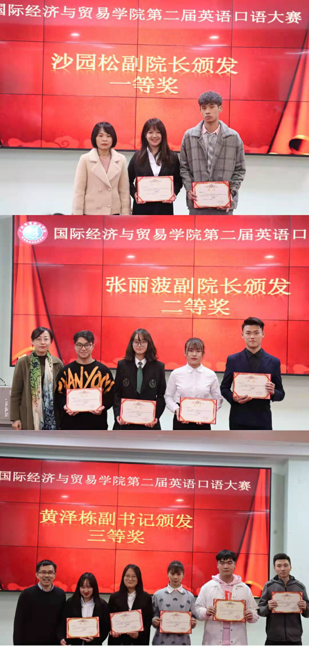 经过公正严谨的评审,颜梓荣同学获得专业组一等奖、刘诗颖同学获得公共组一等奖;获得专业组二等奖的是伍玲玲同学和叶雨婷同学,获得公共组二等奖的是杨建东同学和罗海明同学;获得专业组三等奖的是刘盼同学、何婉彤同学和韦蔓坤同学,获得公共组三等奖的是宋江雪同学、林俊豪同学和赵必乐同学。