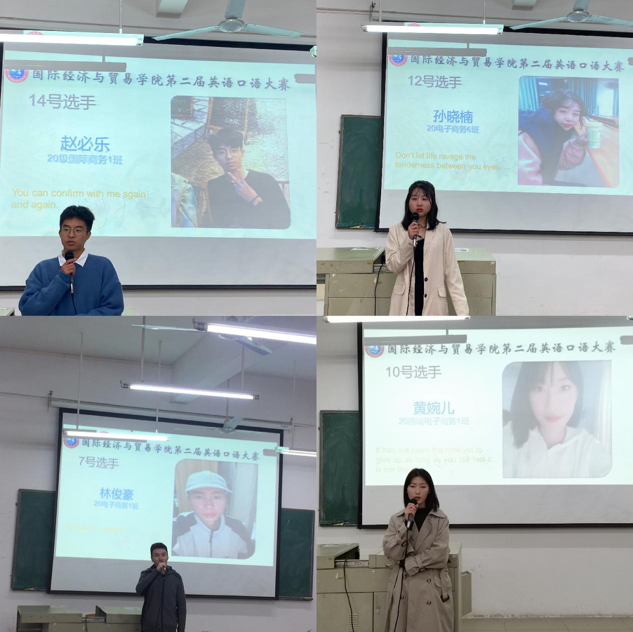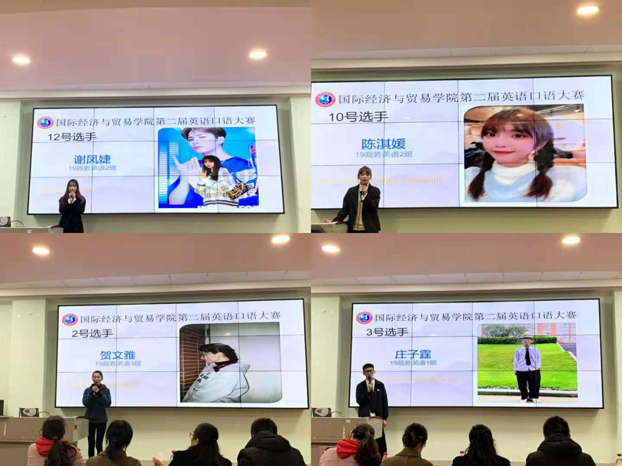 2020年12月16日晚上,国贸学院第二届英语口语大赛决赛在博学楼C101(专业组)和C501(公共组)成功举办。学院张丽菠副院长、黄翔老师、黄雪芳老师、尹柯老师担任专业组评委,郑杰老师、徐金菊老师、周碧茵老师担任公共组评委。