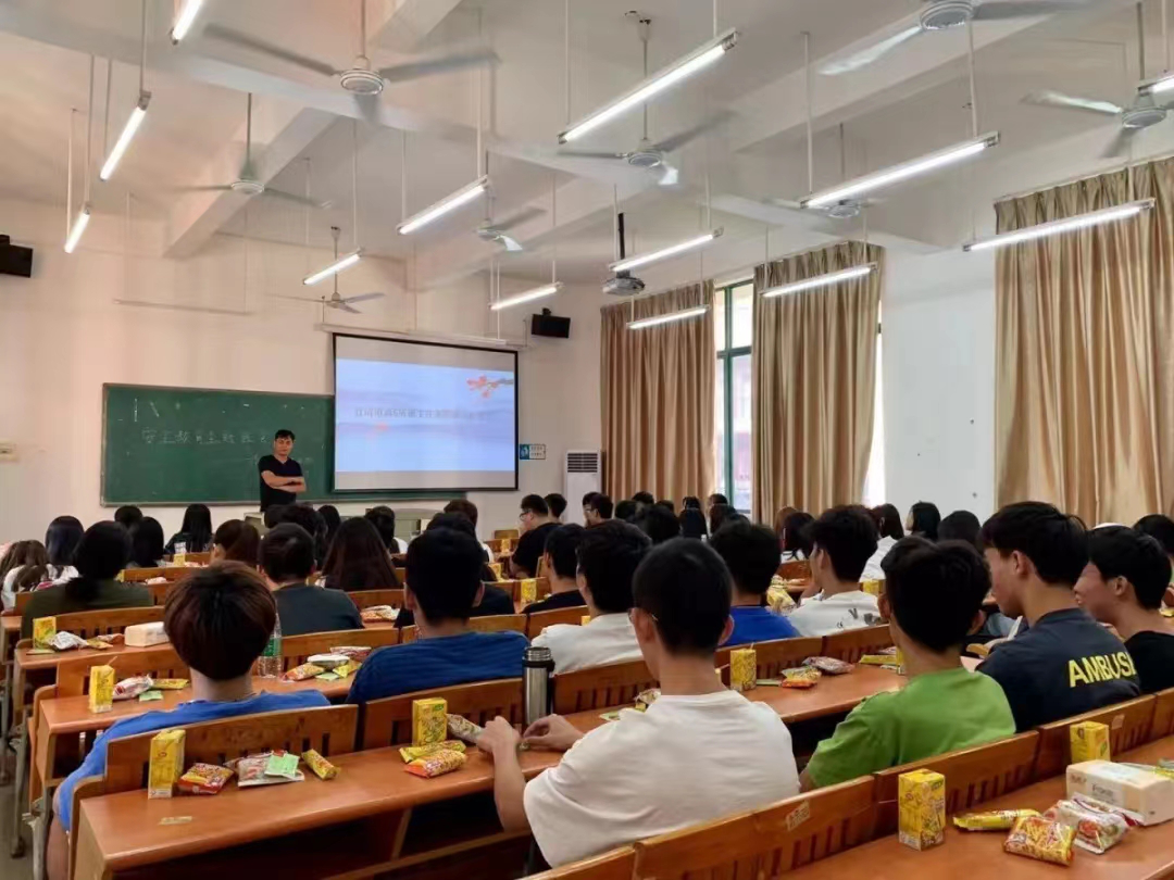班委尽职尽责为同学们讲解校内应注意的卫生及安全问题让同学们更加清楚的了解各种危险的潜在状况。主题班会上除了班委,辅导员和各班班主任也出席了本次演讲。