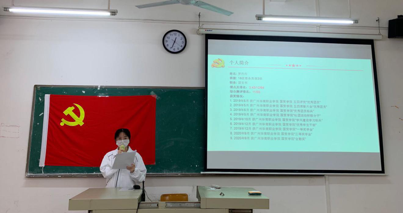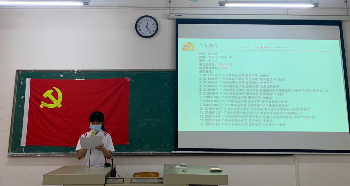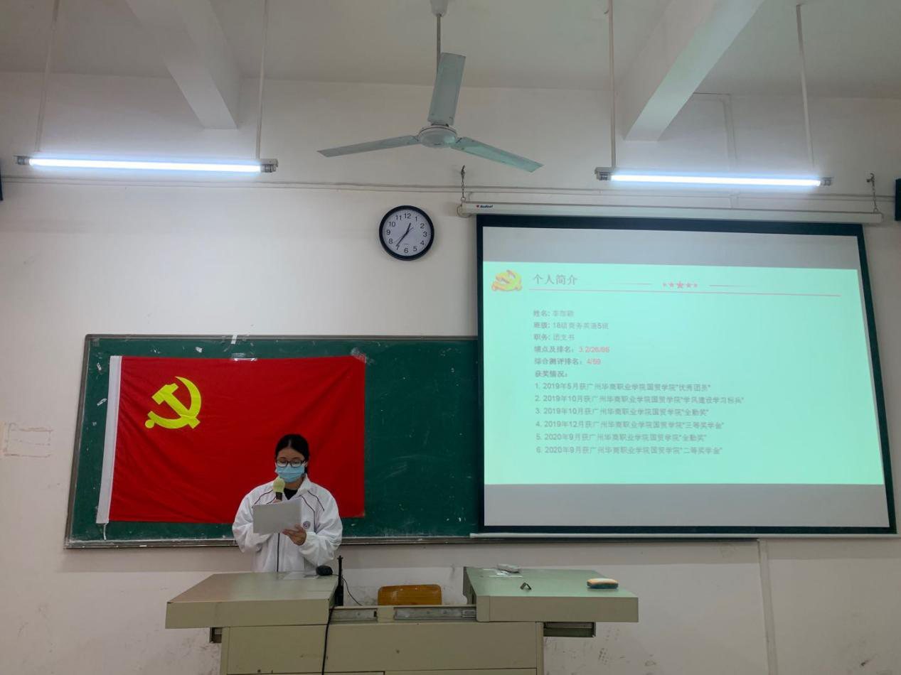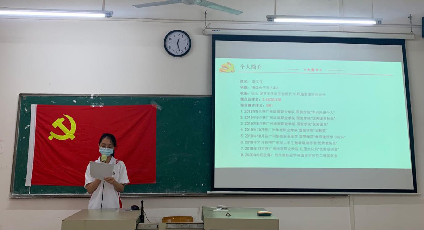 10月14日中午12:20,国际经济与贸易学院学生党支部党员大会在博学楼C207召开,出席本次大会的有学院学生党支部胡秋敏书记、教工党支部黄志辉书记、学生党支部黄炬岱副书记、辅导员甄伟杰同志、全体学生党员以及2020年秋季上半学期发展对象。